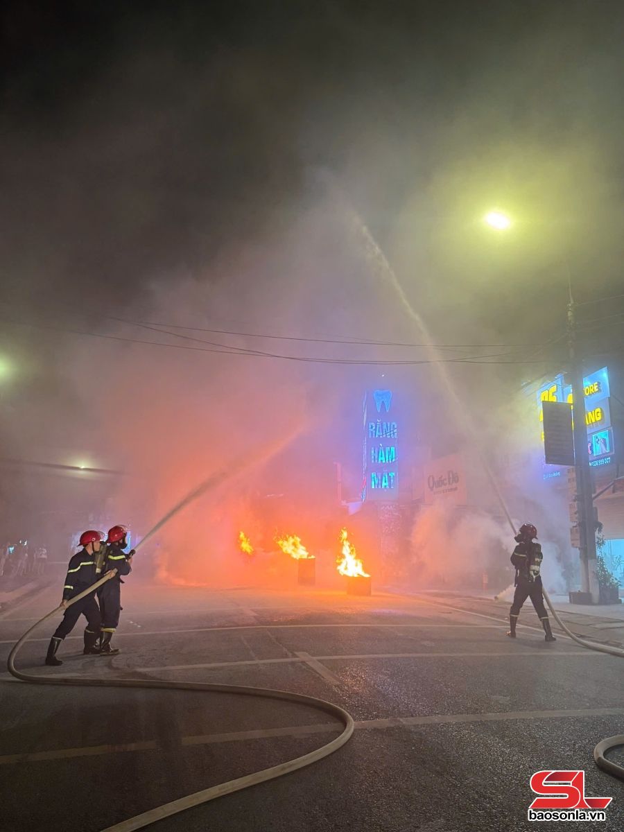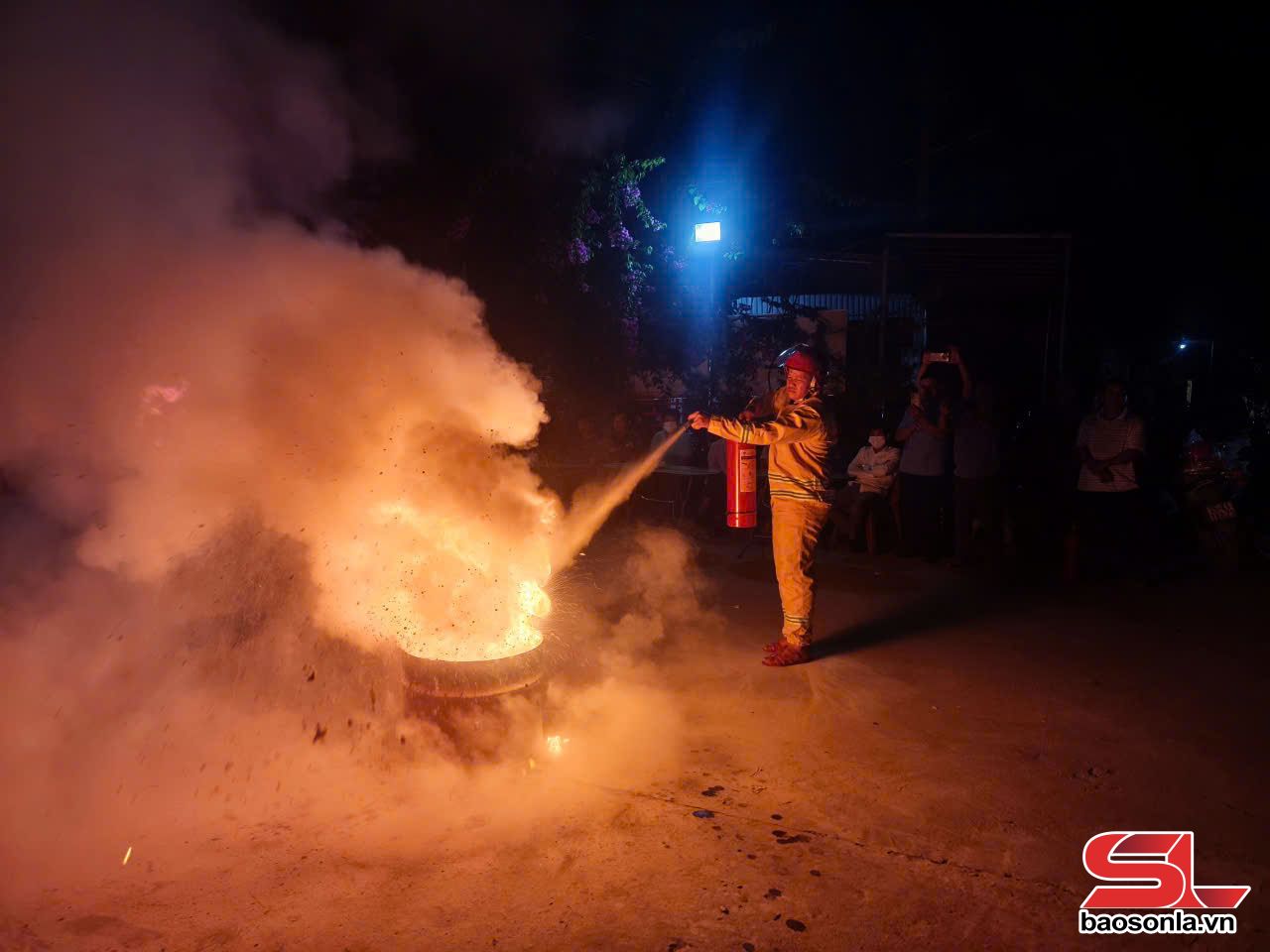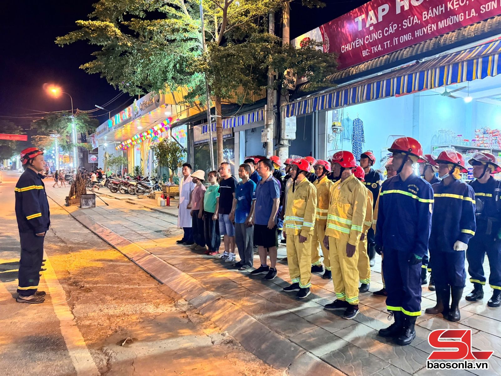 Với tình huống giả định, 19 giờ 30 phút, xảy ra cháy tại cửa hàng cầm đồ, phụ kiện điện thoại tại tổ 1, phường Chiềng Sinh. Do sự cố chập điện gây cháy, ngọn lửa nhanh chóng phát triển và lan sang hàng hóa xung quanh, nếu như không chữa cháy kịp thời sẽ lan toàn bộ khu dân cư gây cháy lớn. Khi xảy ra cháy, gia đình đã hô hoán và nhanh chóng nhấn nút ấn báo cháy của Tổ liên gia để báo động. Tổ liên gia đã nhanh chóng huy động lực lượng sử dụng phương tiện chữa cháy để dập tắt đám cháy, cứu người, di chuyển tài sản ra bên ngoài và báo cho chính quyền địa phương và lực lượng Cảnh sát PCCC và CNCH.