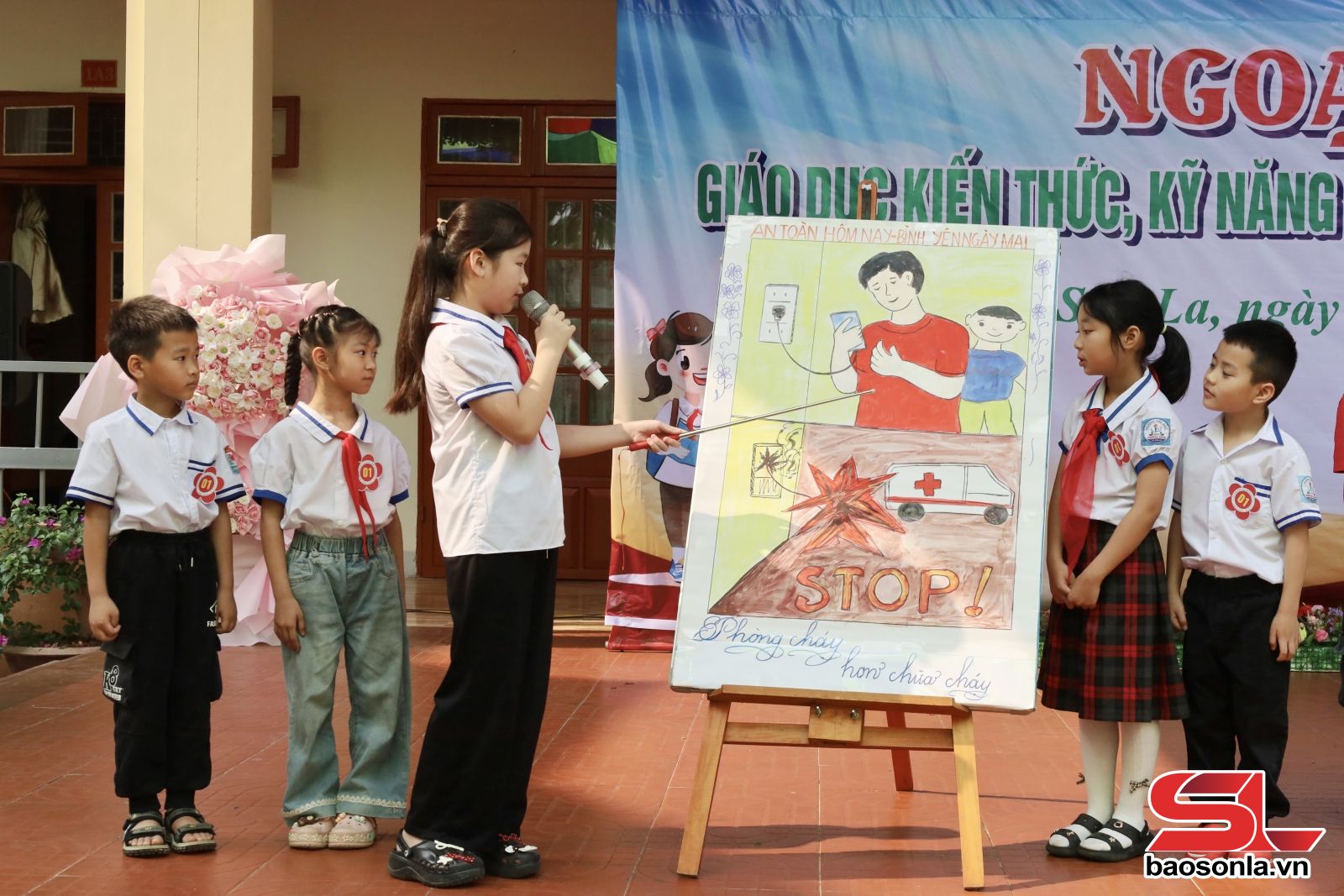 Trường Tiểu học Chiềng Sinh có 27 lớp học với 1.112 học sinh. Đối với học sinh bậc tiểu học, việc tiếp cận kiến thức PCCC cần được thực hiện theo phương pháp sinh động, dễ hiểu. Vì vậy, các giáo viên đã lồng ghép nội dung tuyên truyền vào sinh hoạt dưới cờ, tiết học hoạt động trải nghiệm và các hoạt động ngoại khóa. Những bài giảng không chỉ dừng lại ở lý thuyết, mà đi kèm các tình huống thực tế để học sinh nhận biết và đưa ra các cách xử lý tình huống hợp lý và an toàn.