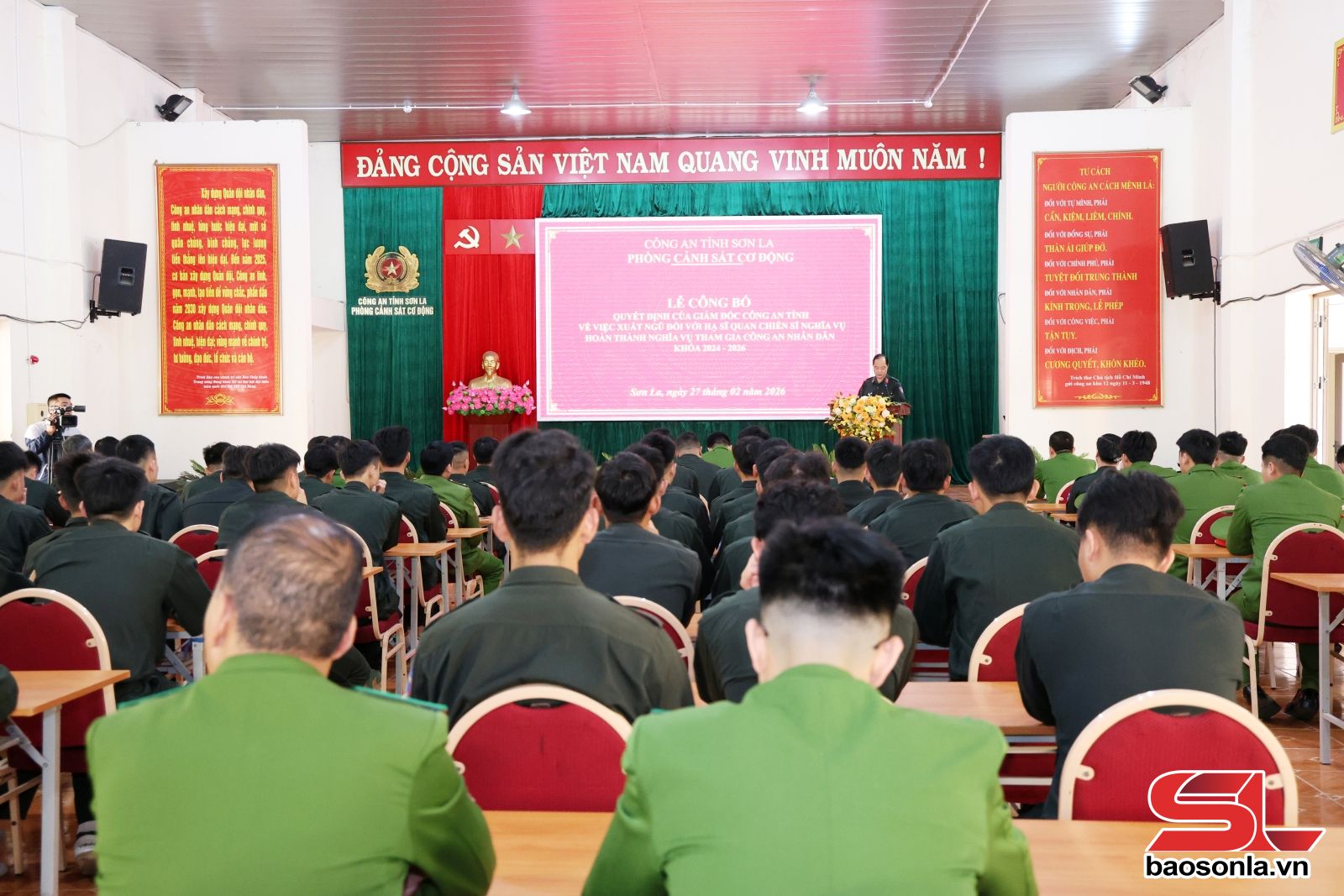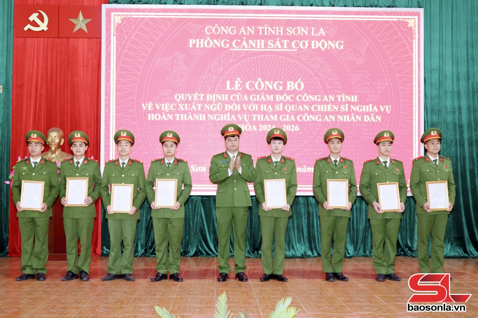 Ngày 27/2, Phòng Cảnh sát Cơ động tổ chức Lễ công bố quyết định của Giám đốc Công an tỉnh Sơn La về việc xuất ngũ đối với hạ sĩ quan, chiến sĩ nghĩa vụ hoàn thành nghĩa vụ tham gia Công an nhân dân khoá 2024-2026.