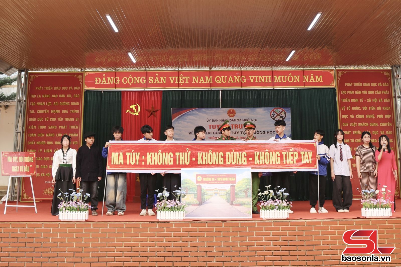 Để ngăn chặn từ sớm, từ xa, loại ma túy ra khỏi trường học, xã Muổi Nọi đã tổ chức chương trình tuyên truyền về tác hại của ma túy tại trường học với chủ đề “Vì một thế hệ trẻ không ma túy”. Ông Hoàng Quốc Việt, Chủ tịch UBND xã Muổi Nọi, cho biết: Chương trình thu hút gần 900 cán bộ, giáo viên, nhân viên, phụ huynh và học sinh khối Trung học cơ sở của các trường Trường TH - THCS Ninh Thuận, Trường TH - THCS Muổi Nọi, Trường TH - THCS Bon Phặng, Trường TH - THCS Bản Lầm tham gia. Điều đó cho thấy sự quan tâm của gia đình, nhà trường và cộng đồng đối với việc ngăn chặn hiểm họa ma túy. Đồng thời, phát huy vai trò phối hợp giữa Công an xã - Nhà trường - Gia đình trong công tác quản lý, giáo dục, giám sát học sinh; kịp thời phát hiện, ngăn chặn các hành vi vi phạm liên quan đến ma túy, góp phần giữ vững an ninh, trật tự tại địa phương, hạn chế phát sinh người nghiện mới trong lứa tuổi thanh thiếu niên.