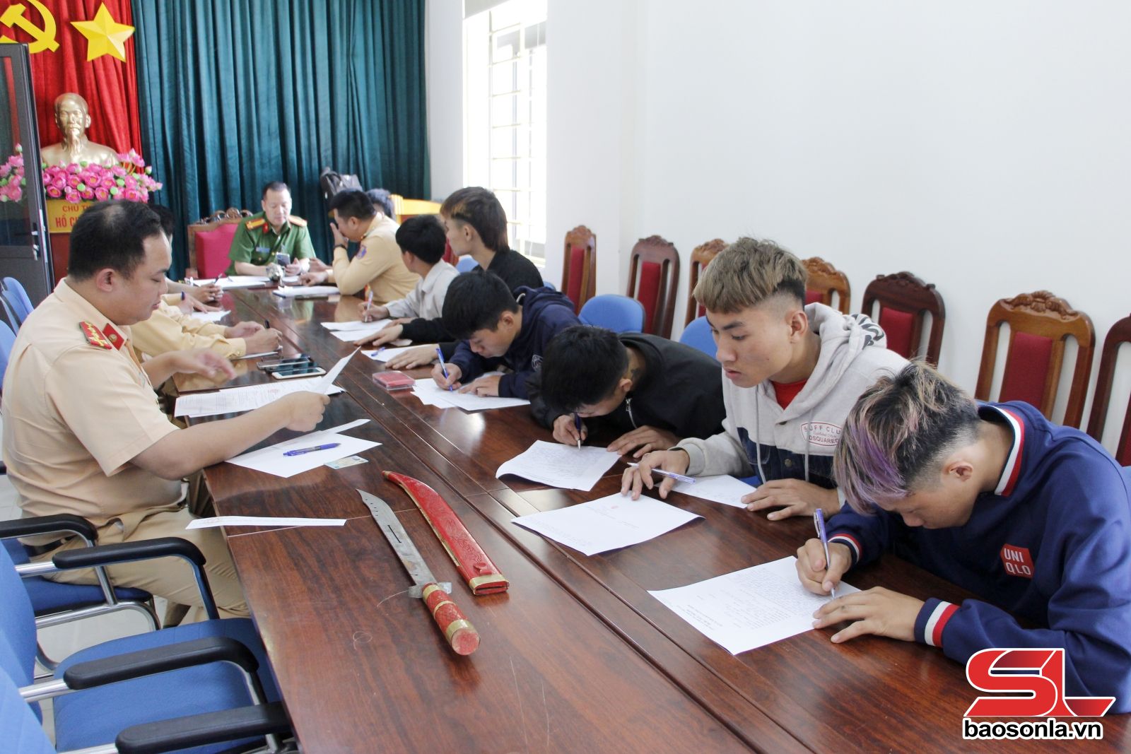 Khoảng 11 giờ ngày 25/10, Phòng Cảnh sát Giao thông tỉnh phối hợp với Công an phường Chiềng Cơi và các phòng nghiệp vụ của Công an tỉnh triệu tập nhóm đối tượng, gồm 9 thanh, thiếu niên để điều tra, làm rõ hành vi gây rối trật tự cộng cộng.