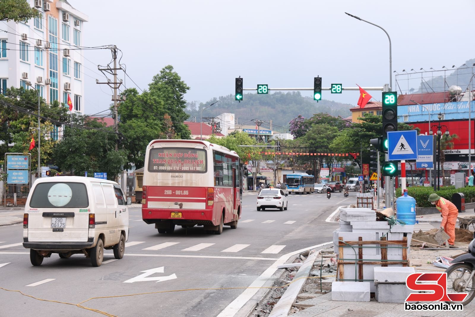 Hiện nay, đơn vị thi công đang lắp đặt đèn tín hiệu giao thông; mở rộng mặt đường, bó vỉa hè; sơn vạch kẻ đường và các phần việc theo đúng kế hoạch. Dự kiến, ngày 24/6/2026, hoàn thành dự án. Trong thời gian đơn vị thi công thực hiện các hạng mục của dự án đều đã có biển cảnh báo, hướng dẫn giao thông.