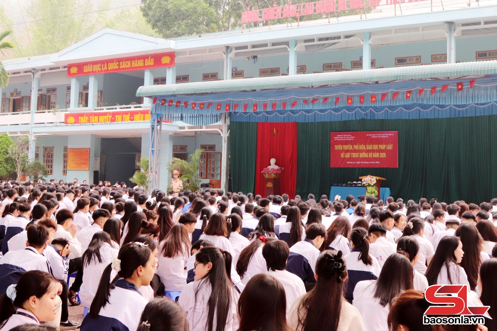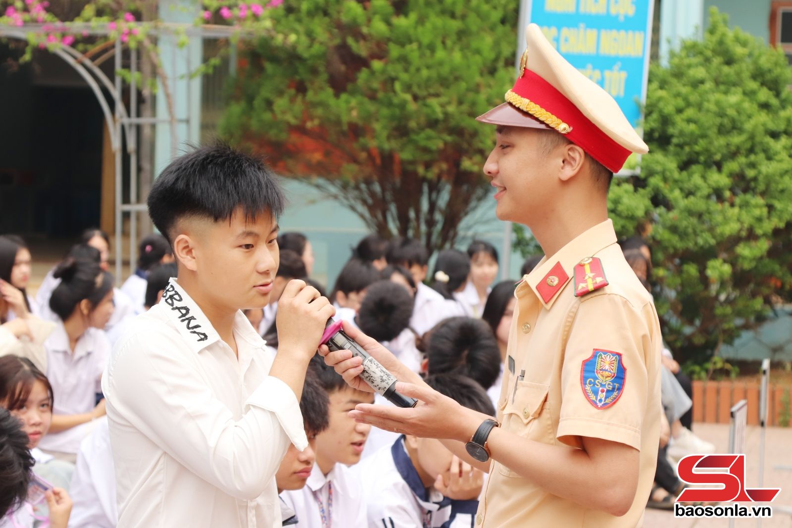 Hơn 1.600 học sinh và giáo viên Trường THPT Mường La được các tuyên truyền viên Phòng CSGT thông tin về tình hình tai nạn giao thông xảy ra trong thời gian qua trên địa bàn tỉnh và xã Mường La; truyền đạt kiến thức cơ bản về Luật Trật tự ATGT; những lỗi vi phạm giao thông phổ biến ở lứa tuổi thanh thiếu niên và cách phòng tránh, như: Không đội mũ bảo hiểm, chở quá số người theo quy định, đi không đúng làn đường, không chú ý quan sát…
