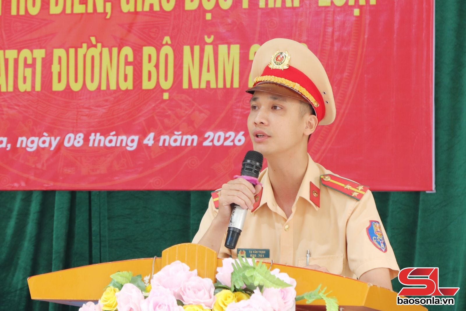Cũng trong ngày 8/4, gần 70 người dân bản Nà Lo, xã Mường La được cán bộ, chiến sĩ Phòng CSGT và Công an xã Mường La tổ chức tuyên truyền các kiến thức pháp luật về TTATGT, như: Đội mũ bảo hiểm đạt chuẩn khi đi mô tô, xe máy; không sử dụng rượu, bia khi điều khiển phương tiện; chấp hành nghiêm tín hiệu đèn giao thông, biển báo, vạch kẻ đường; không chở quá số người quy định; không giao phương tiện cho người chưa đủ điều kiện điều khiển. Bên cạnh đó, lực lượng chức năng lồng ghép tuyên truyền về thực trạng tai nạn giao thông trên địa bàn, phân tích nguyên nhân và hậu quả của các hành vi vi phạm phổ biến. Qua đó, nâng cao nhận thức, ý thức chấp hành pháp luật cho người dân.