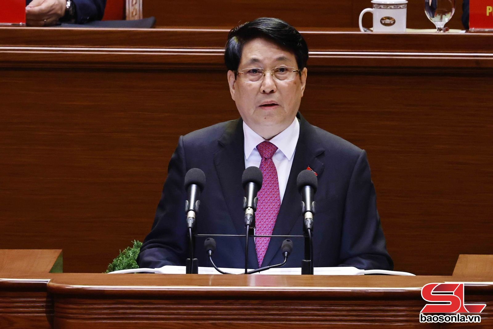 Đồng chí Lương Cường, Ủy viên Bộ Chính trị, Chủ tịch nước, trình bày Diễn văn khai mạc Đại hội.