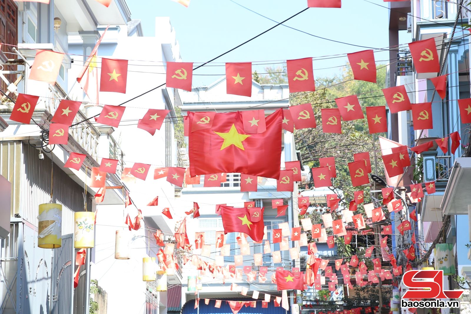 Sắc cờ hoa, pano, khẩu hiệu lan tỏa niềm tin, niềm tự hào và sự đồng lòng của nhân dân Sơn La hướng về sự kiện chính trị trọng đại của đất nước.