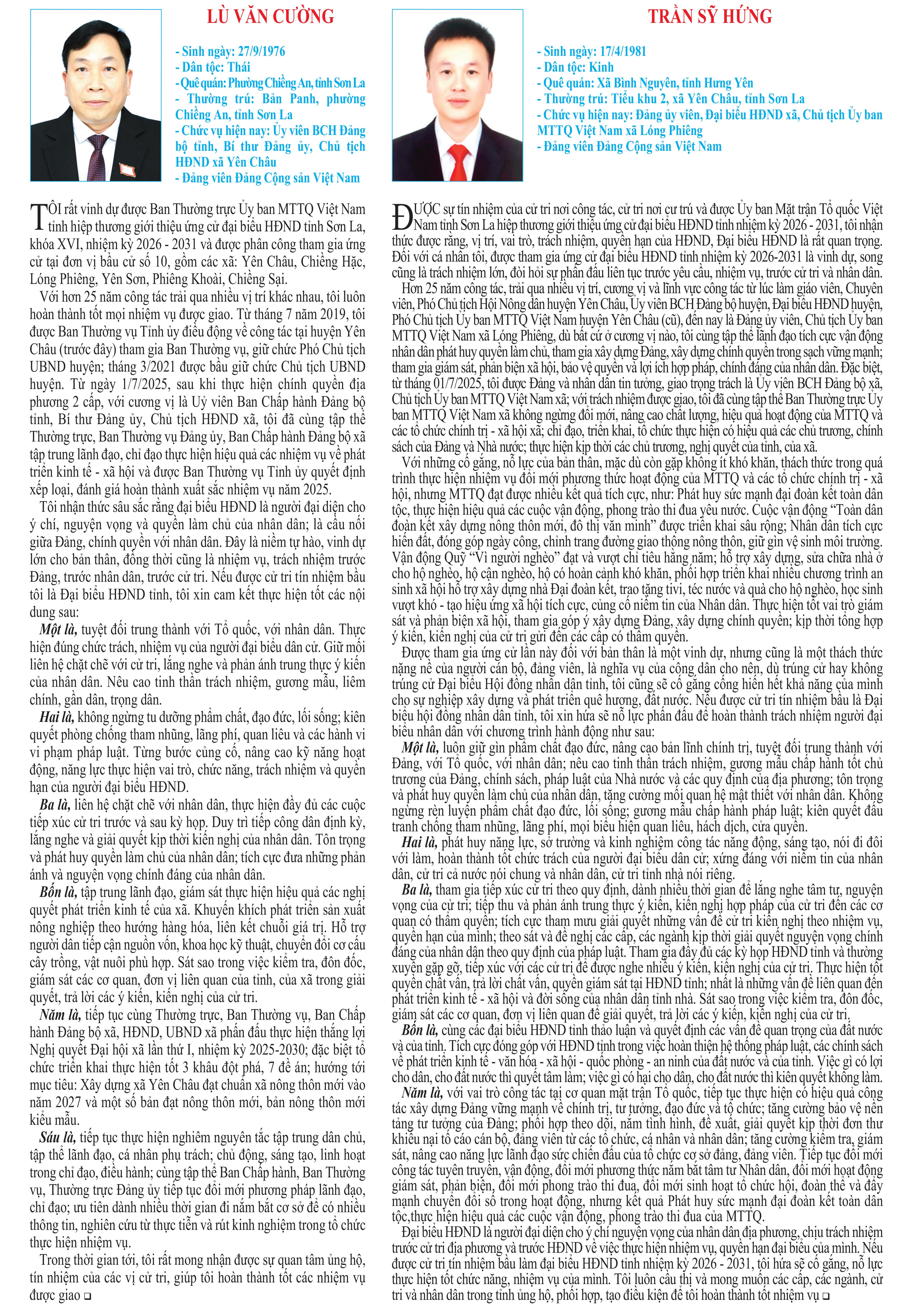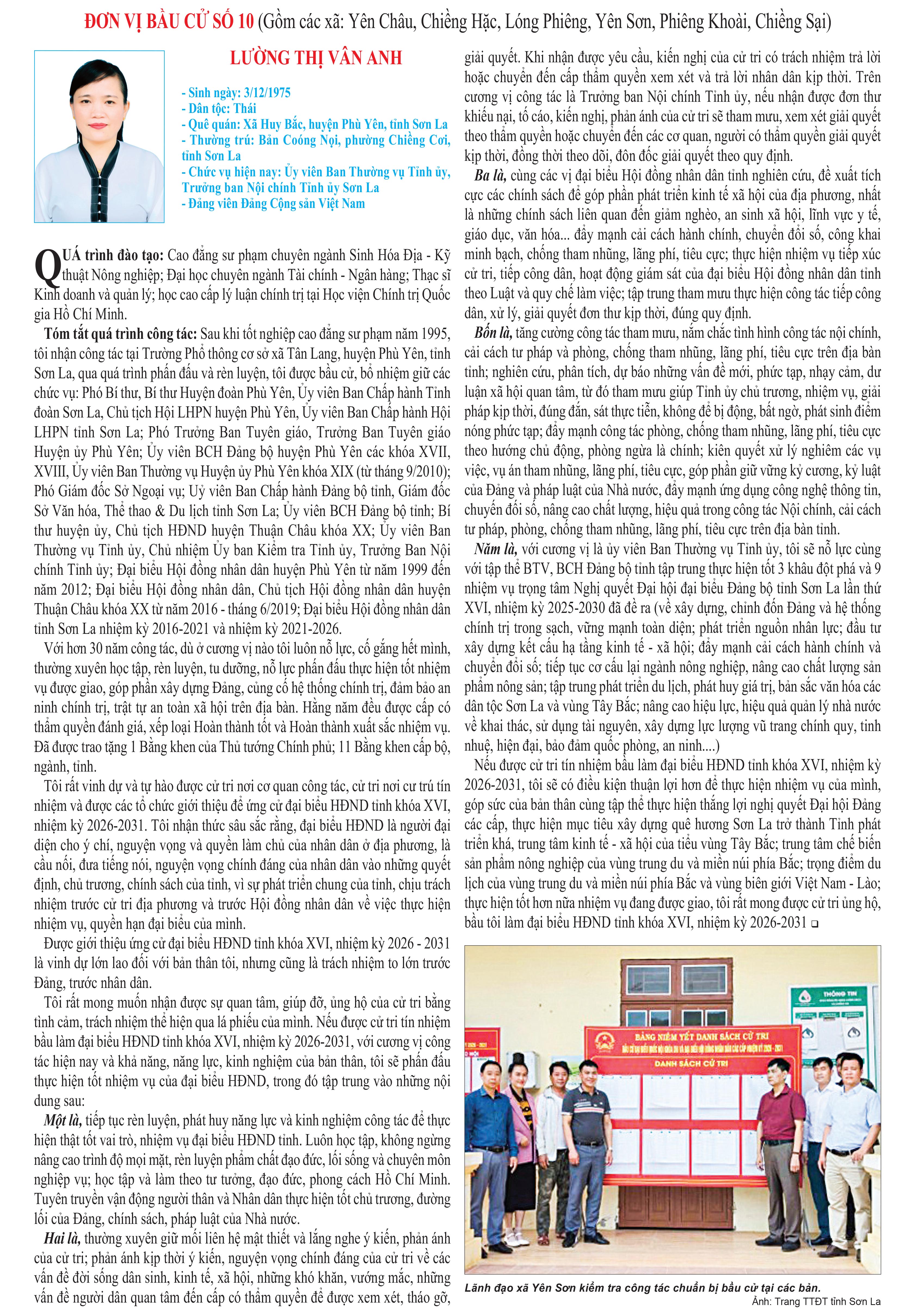 CHƯƠNG TRÌNH HÀNH ĐỘNG CỦA ỨNG CỬ VIÊN ĐẠI BIỂU HĐND TỈNH KHÓA XVI, NHIỆM KỲ 2026 - 2031 TẠI ĐƠN VỊ BẦU CỬ SỐ 10