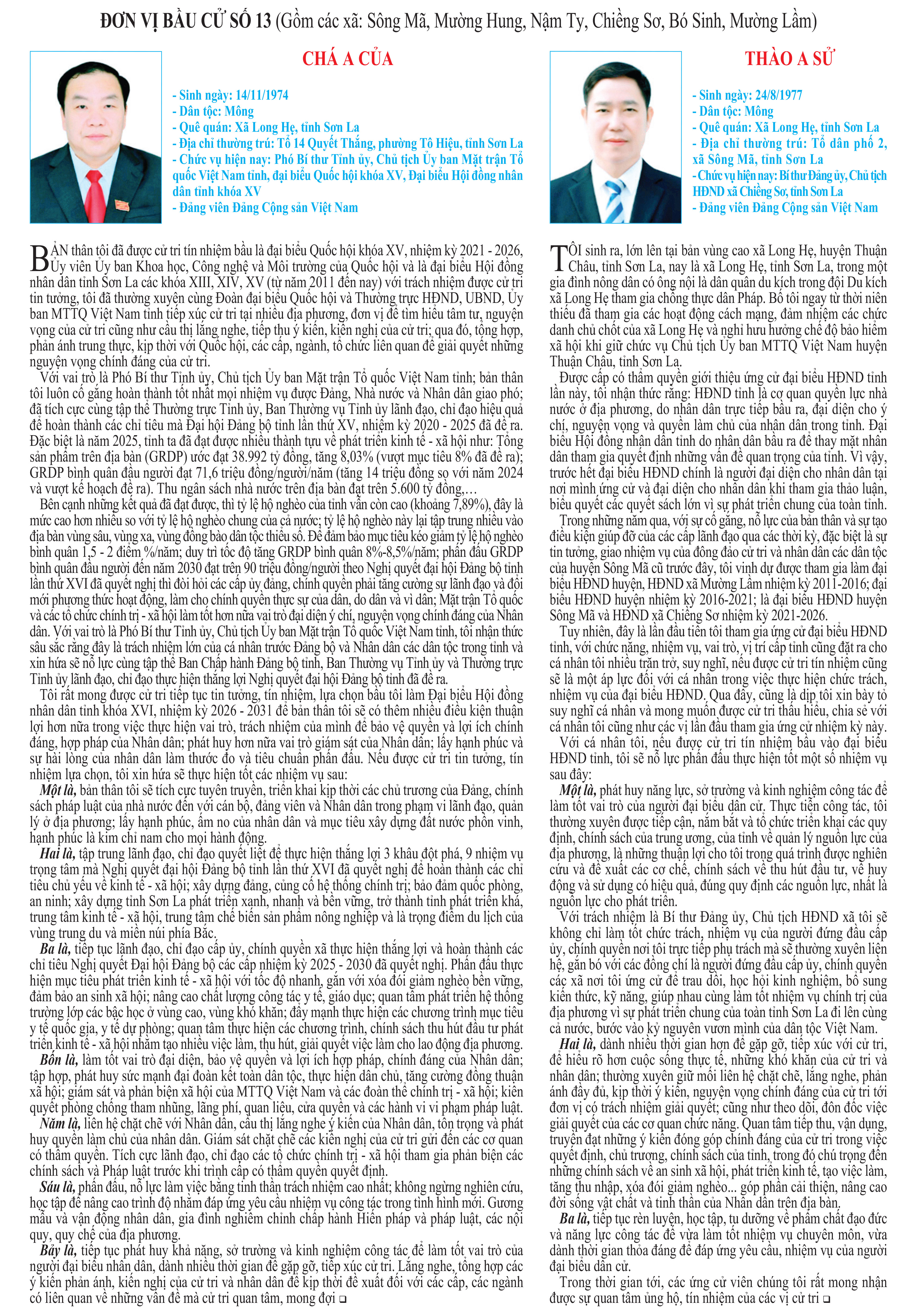 CHƯƠNG TRÌNH HÀNH ĐỘNG CỦA ỨNG CỬ VIÊN ĐẠI BIỂU HĐND TỈNH KHÓA XVI, NHIỆM KỲ 2026 - 2031 TẠI ĐƠN VỊ BẦU CỬ SỐ 13