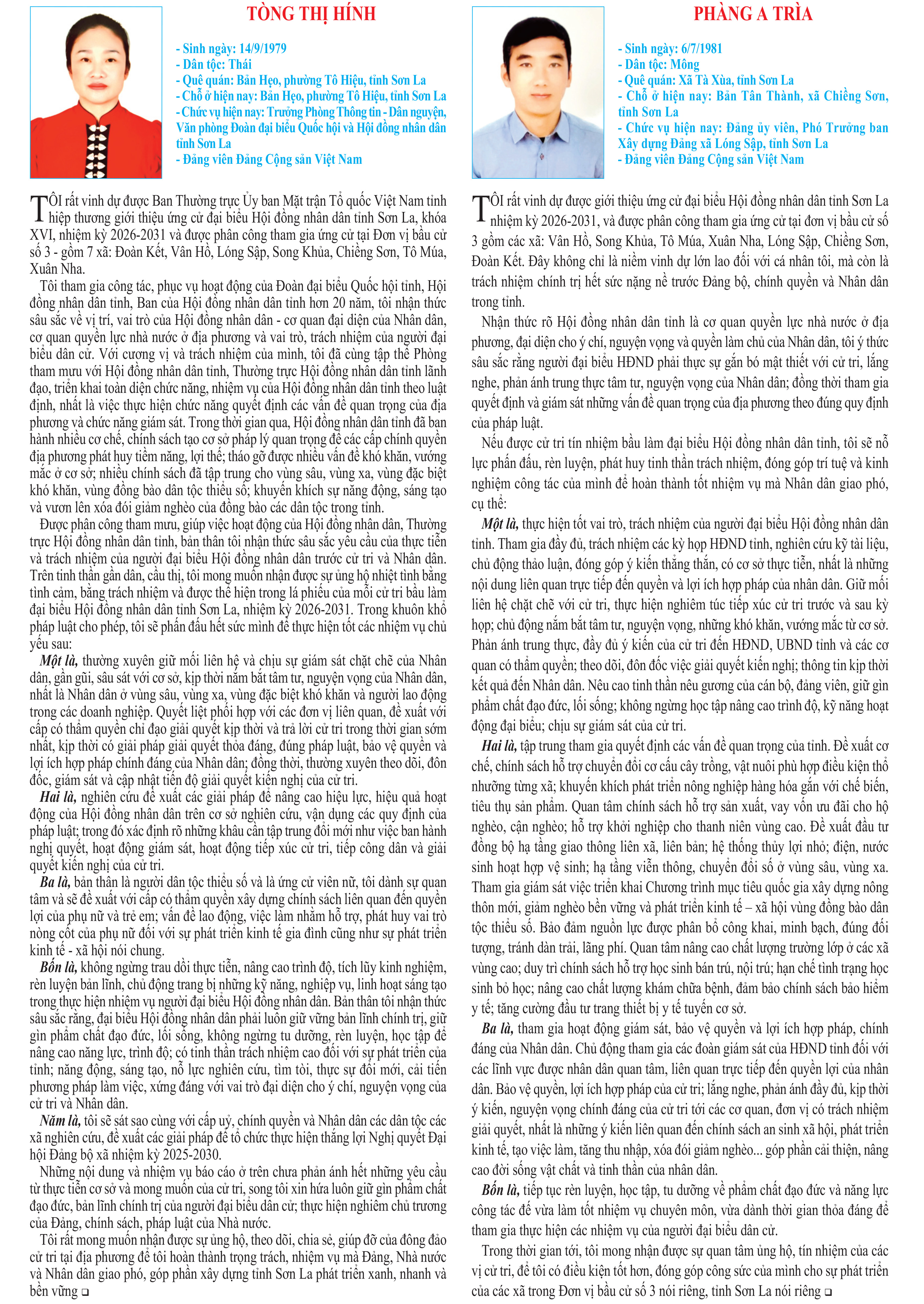 CHƯƠNG TRÌNH HÀNH ĐỘNG CỦA ỨNG CỬ VIÊN ĐẠI BIỂU HĐND TỈNH KHÓA XVI, NHIỆM KỲ 2026 - 2031 TẠI ĐƠN VỊ BẦU CỬ SỐ 3