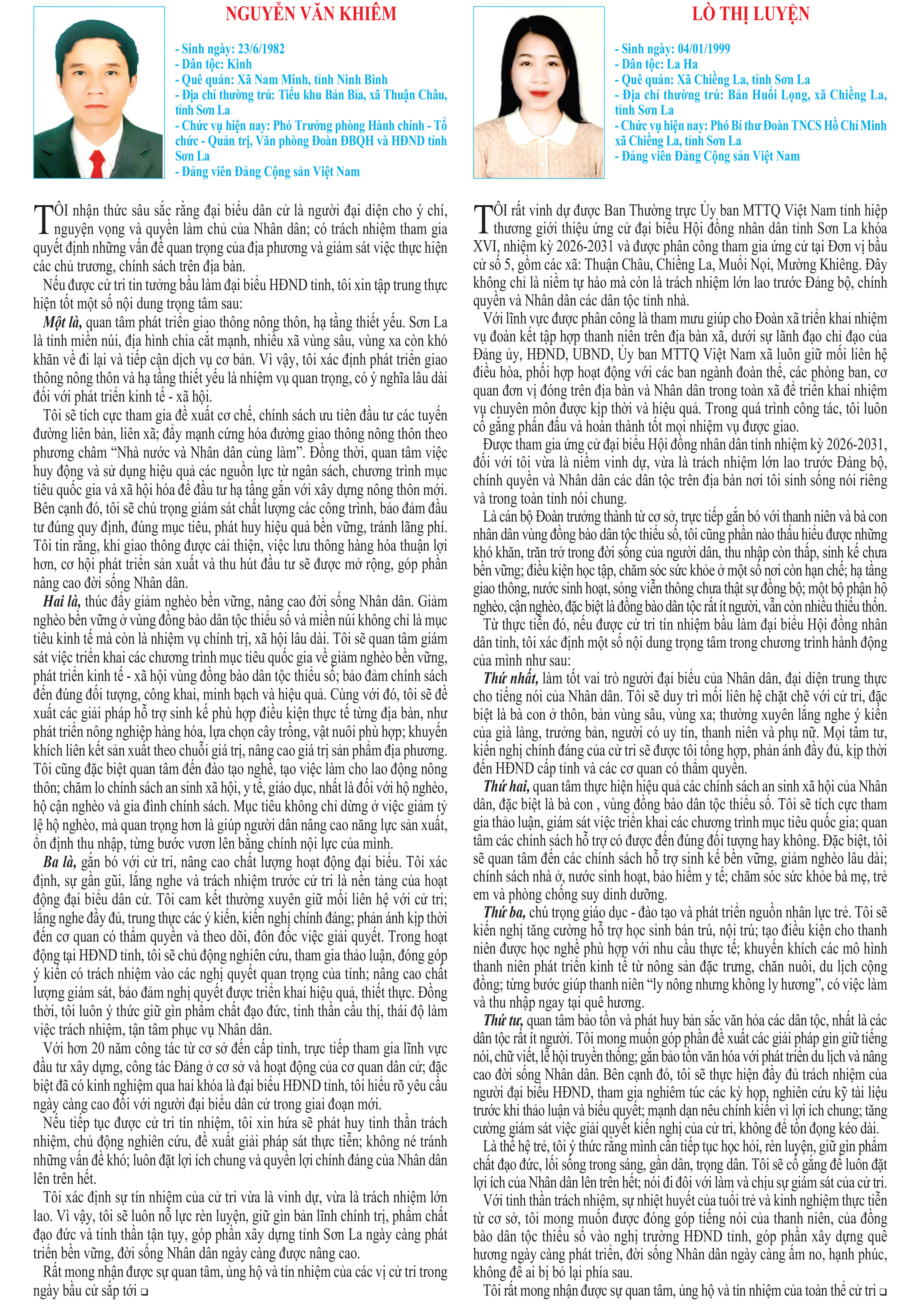 CHƯƠNG TRÌNH HÀNH ĐỘNG CỦA ỨNG CỬ VIÊN ĐẠI BIỂU HĐND TỈNH KHÓA XVI, NHIỆM KỲ 2026 - 2031 TẠI ĐƠN VỊ BẦU CỬ SỐ 5