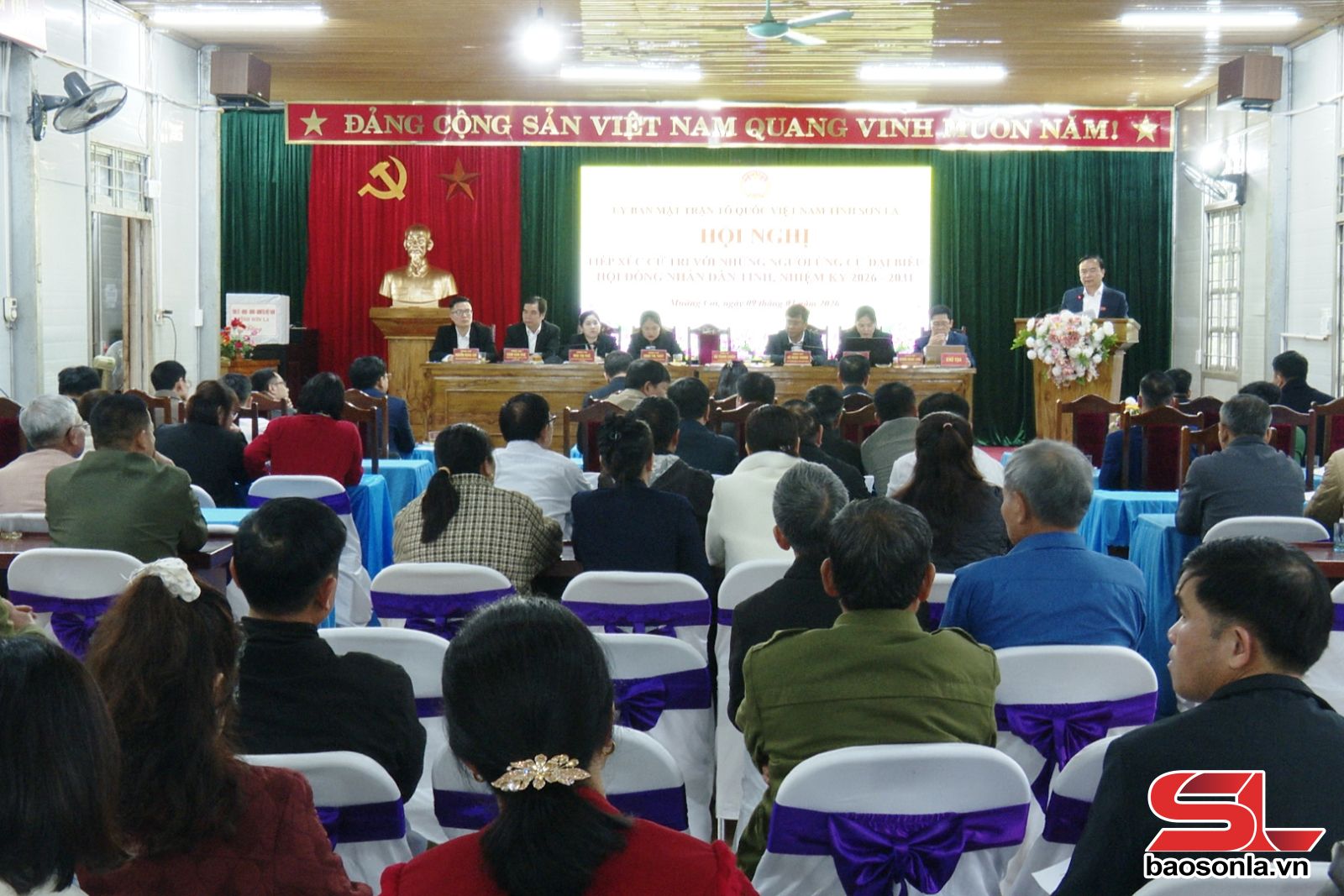 Ngày 9/3, tại xã Mường Cơi, Ủy ban MTTQ Việt Nam tỉnh Sơn La đã tổ chức Hội nghị tiếp xúc cử tri với những người ứng cử đại biểu HĐND tỉnh khóa XVI, nhiệm kỳ 2026-2031, thuộc Đơn vị bầu cử số 9.