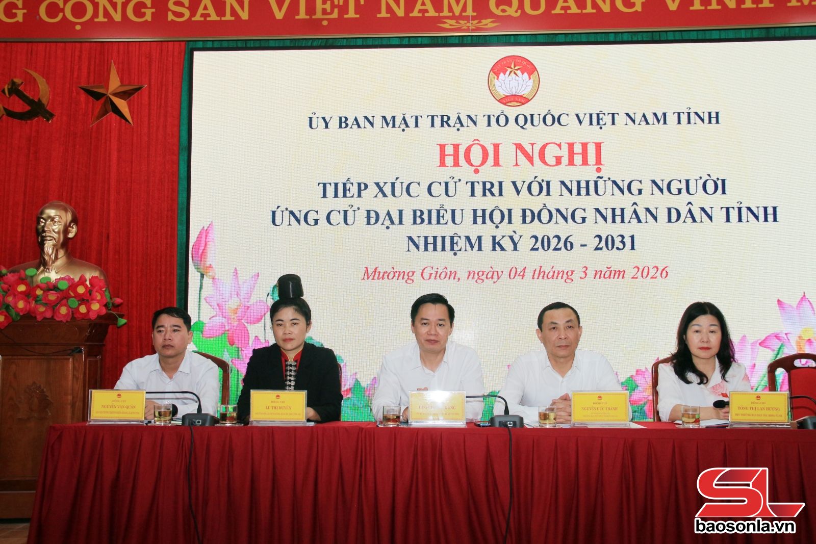 Tại hội nghị, đại diện Ủy ban MTTQ Việt Nam tỉnh đã thông qua tiểu sử tóm tắt của 5 người ứng cử đại biểu HĐND tỉnh khóa XVI tại Đơn vị bầu cử số 4, gồm các đồng chí: Nguyễn Đức Thành, Ủy viên Ban Thường vụ Tỉnh uỷ, Trưởng Ban Tổ chức Tỉnh uỷ; Đinh Trung Dũng, Tỉnh uỷ viên, Bí thư Đảng uỷ xã Quỳnh Nhai; Tống Thị Lan Hương, Phó trưởng Ban Dân tộc, HĐND tỉnh; Lù Thị Duyên, chuyên viên Ban Xây dựng Đảng, Đảng ủy xã Mường Sại; Nguyễn Văn Quân, giáo viên Trường Tiểu học và THCS Chiềng Khoang, xã Quỳnh Nhai.