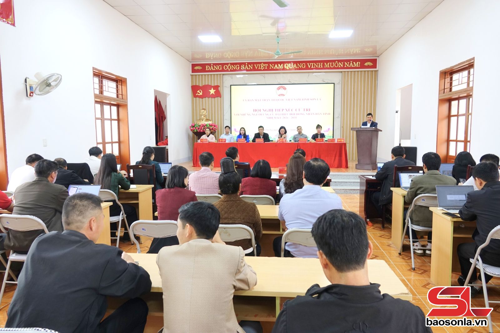 Tại Hội nghị, lãnh đạo Ủy ban MTTQ Việt Nam xã Chiềng La đã giới thiệu tóm tắt tiểu sử 7 ứng cử viên đại biểu HĐND tỉnh nhiệm kỳ 2026 - 2031, thuộc đơn vị bầu cử số 5, gồm các đồng chí: Hoàng Thị Đôi, Phó Trưởng đoàn Đại biểu Quốc hội tỉnh; Huỳnh Minh Tuấn, Bí thư Đảng uỷ xã Muổi Nọi; Nguyễn Văn Khiêm, Phó trưởng phòng Hành chính, Tổ chức, Quản trị, Văn phòng Đoàn Đại biểu Quốc hội và HĐND tỉnh; Lò Thị Luyện, Phó Bí thư Đoàn xã, Cơ quan Ủy ban MTTQ Việt Nam xã Chiềng La; Phan Văn Đạt, viên chức Trung tâm Dịch vụ tổng hợp xã Muổi Nọi; Quàng Thị Ngoan, nông dân bản Bó Mạ, xã Chiềng La; Tòng Thị Thởi, bí thư chi đoàn bản Hiên, xã Mường Khiêng.
