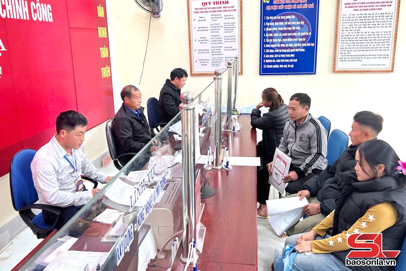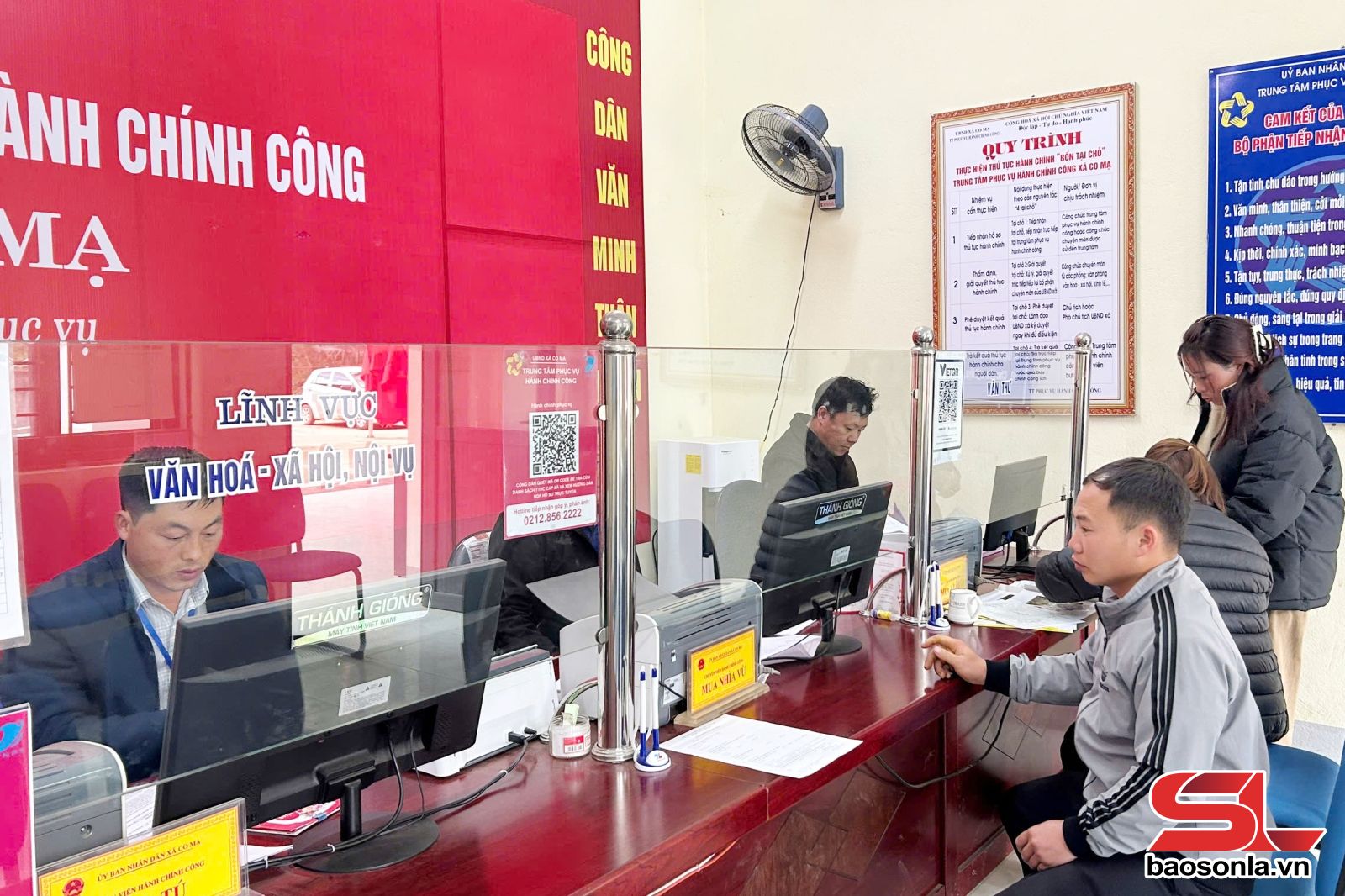Chúng tôi đến Trung tâm phục vụ hành chính công xã Co Mạ, nhận thấy không khí làm việc diễn ra nghiêm túc. Tất cả cán bộ làm nhiệm vụ ở các bộ phận đều có mặt đông đủ, sẵn sàng tiếp nhận, hướng dẫn người dân làm thủ tục hành chính.