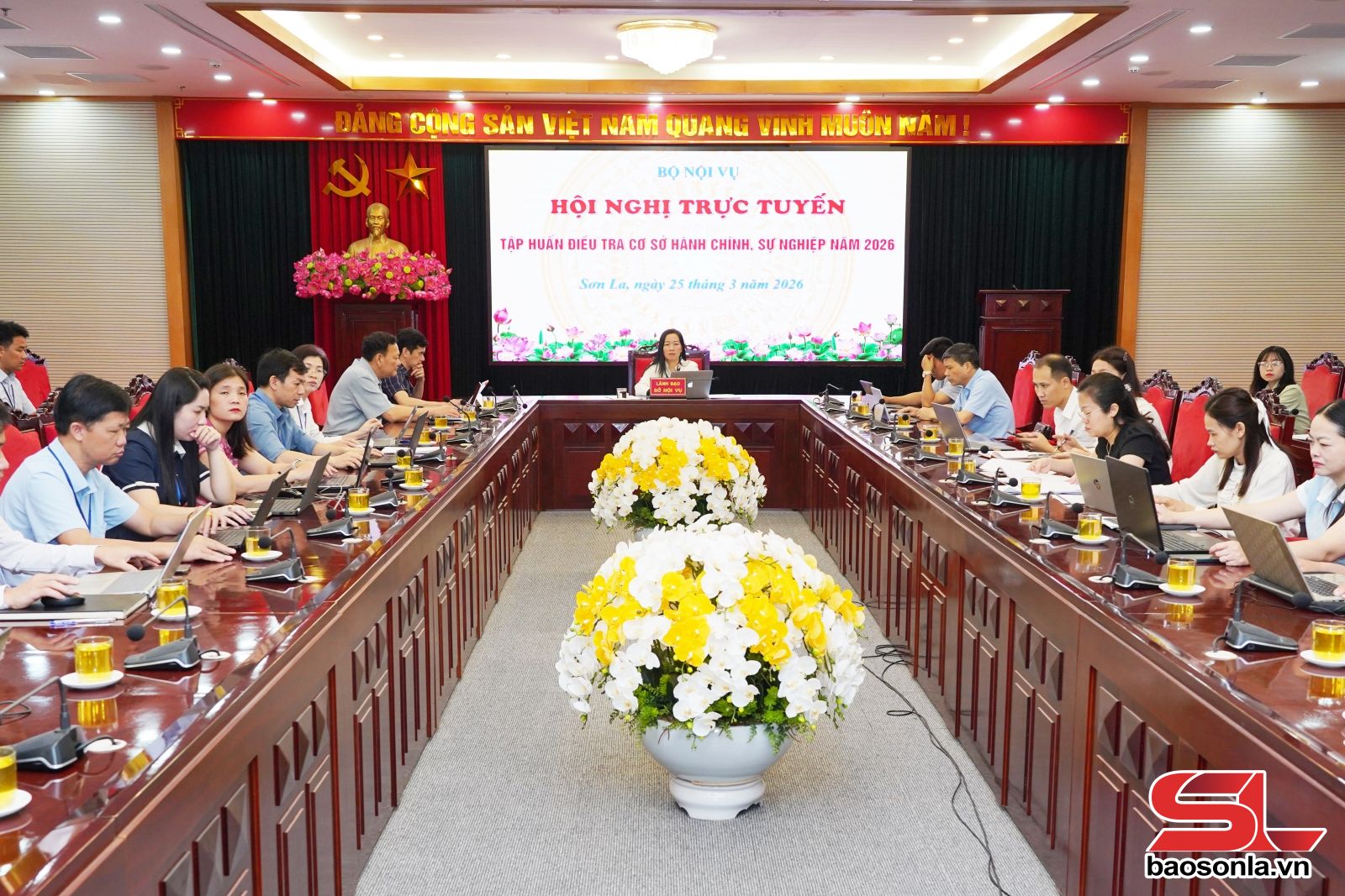Dự Hội nghị tại điểm cầu tỉnh Sơn La có đại diện một số sở, ngành của tỉnh; công chức, viên chức được giao nhiệm vụ thực hiện kê khai thông tin vào phiếu điều tra của các cơ quan đảng cấp tỉnh, các tổ chức chính trị - xã hội cấp tỉnh, các sở, ban, ngành, các đơn vị sự nghiệp công lập.