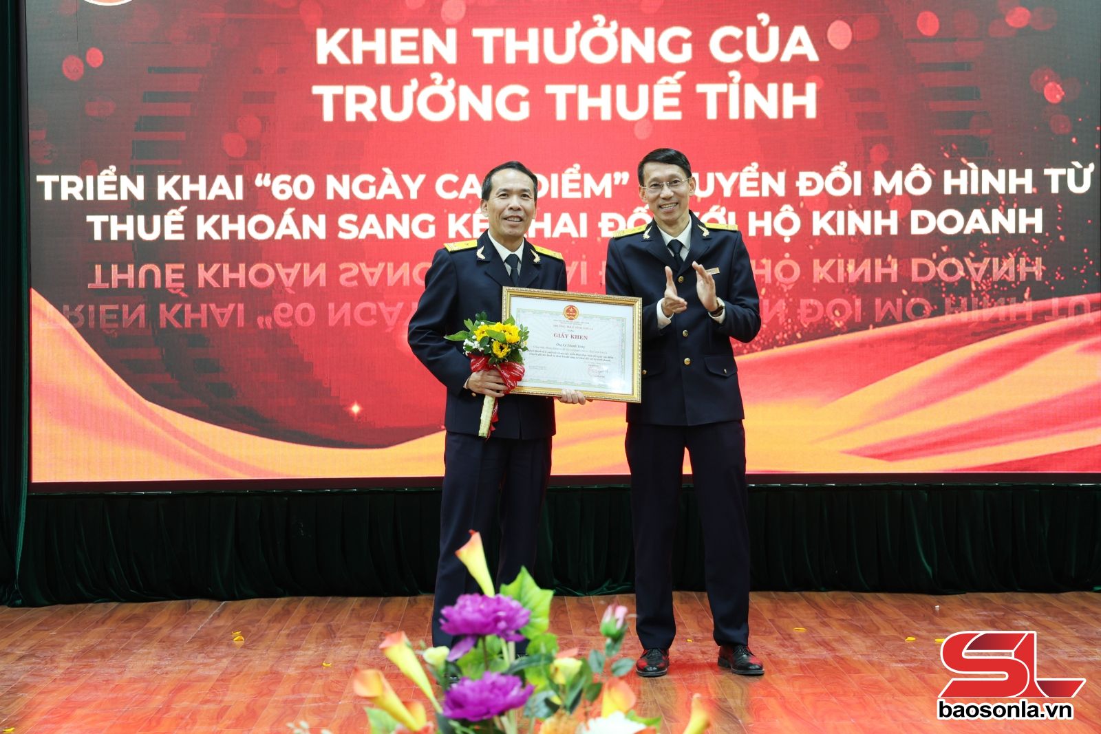 Tại hội nghị, Thuế tỉnh Sơn La đã tặng giấy khen cho 1 tập thể, 57 cá nhân có thành tích xuất sắc trong triển khai thực hiện 60 ngày cao điểm chuyển đổi mô hình từ thuế khoán sang kê khai đối với hộ kinh doanh và 16 cá nhân có thành tích xuất sắc trong triển khai thực hiện Đề án 06 của Chính phủ.