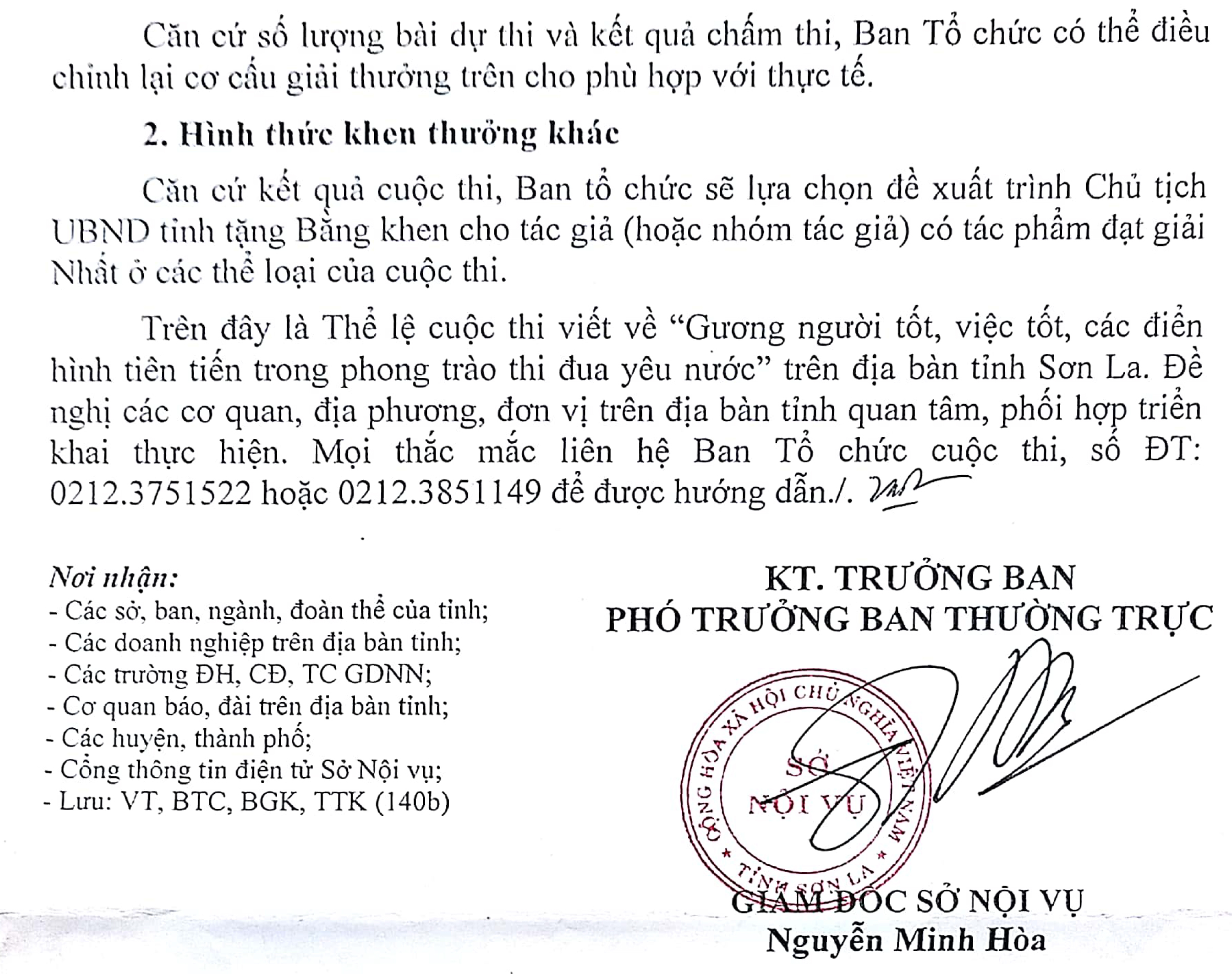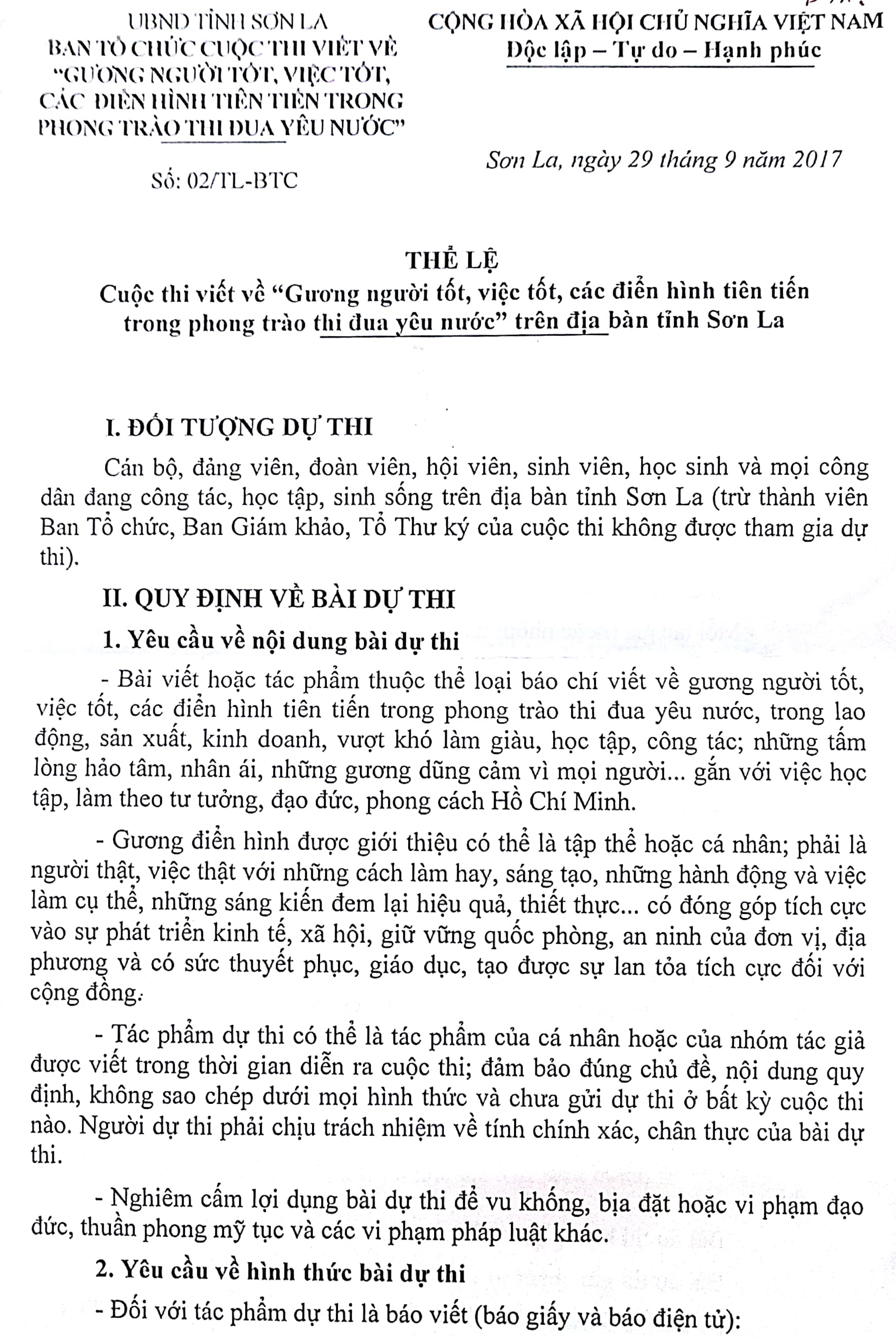 THỂ LỆ Cuộc thi viết về "Gương người tốt, việc tốt, các điển hình tiên tiến trong phong trào thi đua yêu nước" trên địa bàn tỉnh Sơn La