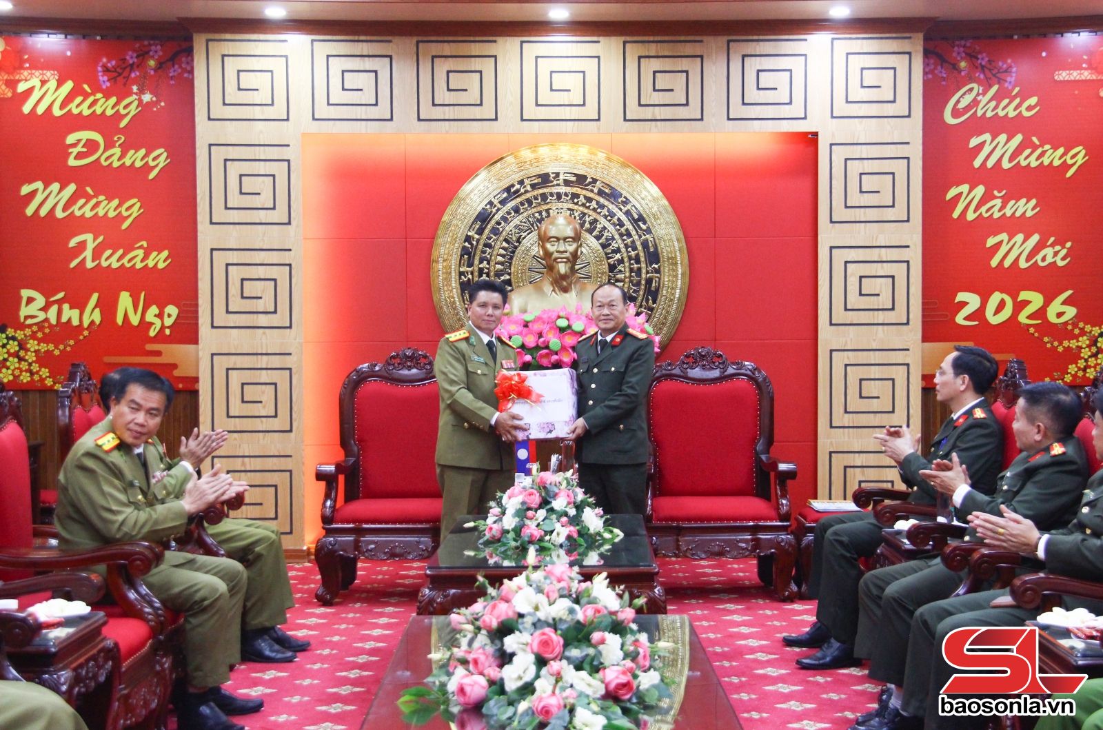 Trong không khí thắm tình đoàn kết và nhân dịp xuân mới, xuân Bính Ngọ 2026, lãnh đạo Công an tỉnh Hủa Phăn đã chúc mừng năm mới cán bộ, chiến sĩ Công an tỉnh Sơn La. Đồng thời, đề nghị Công an hai tỉnh tiếp tục tăng cường hợp tác đoàn kết, hữu nghị, góp phần thực hiện tốt nhiệm vụ bảo vệ an ninh trật tự, phòng chống các loại tội phạm, nhất là tội phạm ma túy, xây dựng địa bàn, khu vực biên giới ngày càng ổn định và phát triển.