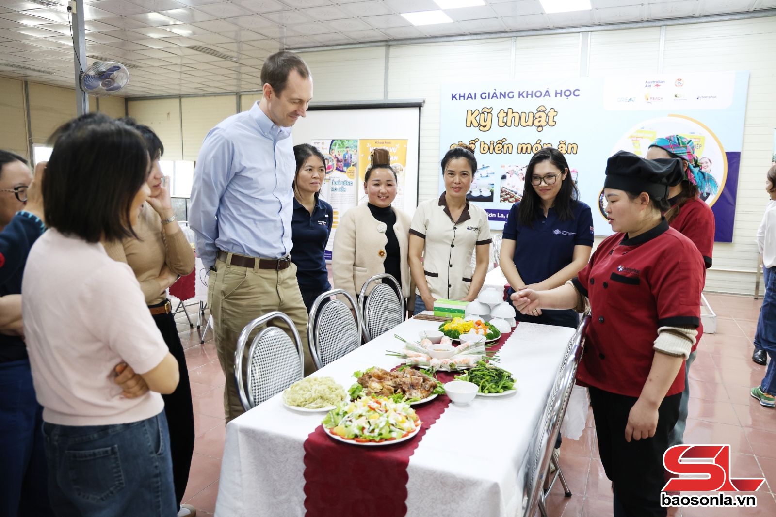 Đoàn công tác cũng đã đến thăm và trao đổi với các bên liên quan trong Dự án “Phát triển dịch vụ đào tạo kỹ năng nghề và tạo việc làm trong ngành du lịch ở Sơn La”; thăm và trao đổi với chị Lừ Thị Phúc học viên lớp pha chế “Đồ uống không cồn”, người hưởng lợi thuộc tiểu dự án “Phát triển dịch vụ đào tạo kỹ năng nghề và tạo việc làm trong ngành du lịch ở Sơn La”, do Viện Nghiên cứu và Hỗ trợ nghề nghiệp (REACH) triển khai từ tháng 3/2025. Dự án đặt mục tiêu đến tháng 3/2027 xây dựng 20 mô hình doanh nghiệp đào tạo tại chỗ (quán cà phê, quán ăn, spa); đào tạo 450 thanh niên, trong đó, tối thiểu 70% có việc làm sau 6 tháng tốt nghiệp; đồng thời nâng cao năng lực cho khoảng 100 doanh nghiệp du lịch trên địa bàn. Đến nay, đối tác đã triển khai 8 khóa đào tạo gồm: 4 khóa pha chế đồ uống không cồn; 2 khóa kỹ thuật chế biến món ăn; 1 khóa nghiệp vụ nhà hàng và pha chế; 1 khóa nghiệp vụ khách sạn, cho 190 lượt học viên tham gia đào tạo, trong đó, 59 nam, 116 nữ trên địa bàn các xã Vân Hồ, Bắc Yên, Mường La, phường Thảo Nguyên…