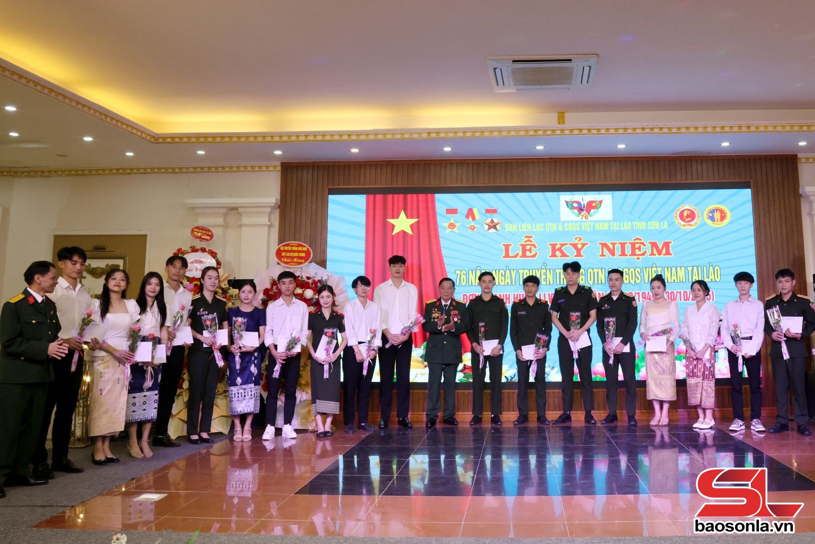 Nhân dịp này, Đại sứ quán nước Cộng hòa Dân chủ Nhân dân Lào tại Việt Nam đã tặng bằng khen 1 tập thể, 2 cá nhân có thành tích trong đỡ đầu, hỗ trợ các lưu học sinh Lào năm học 2024 - 2025. Ban liên lạc Quân tình nguyện và chuyên gia quân sự Việt Nam tại Lào tỉnh Sơn La trao quà cho lưu học sinh Lào đang học tập trên địa bàn tỉnh.