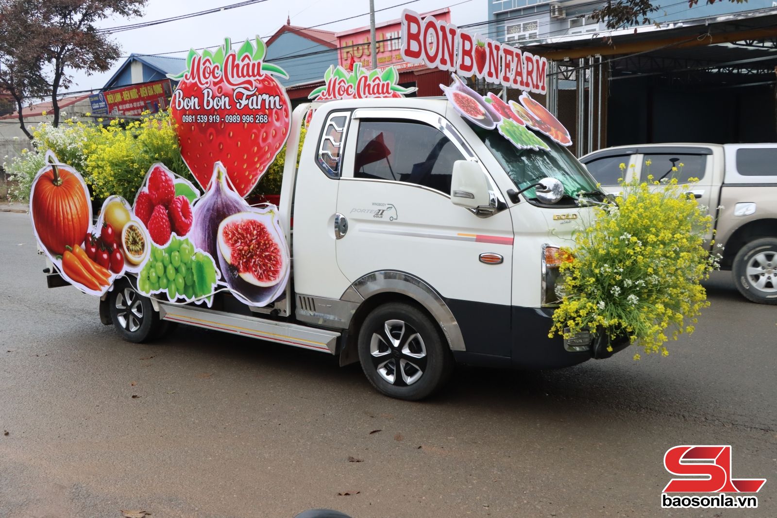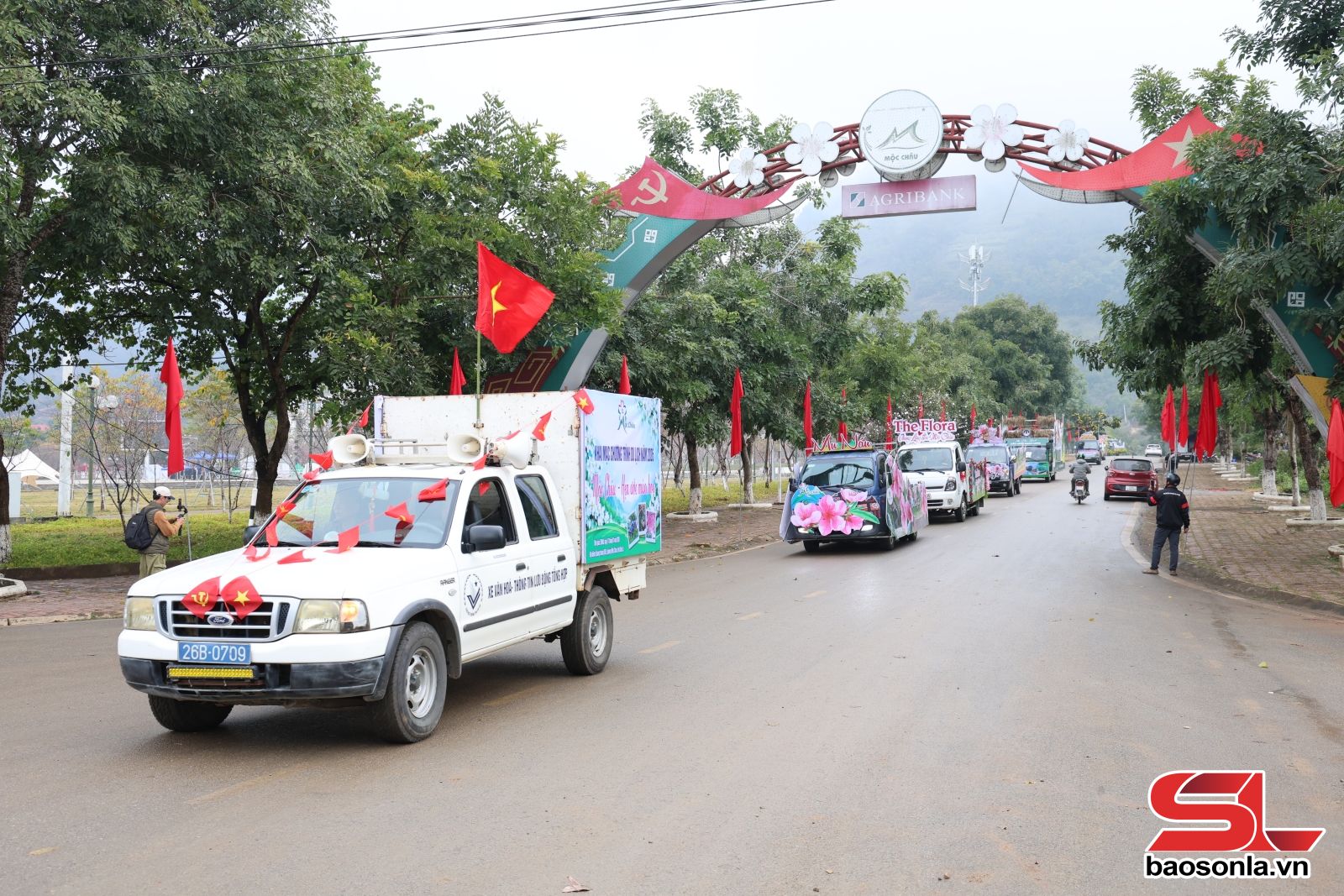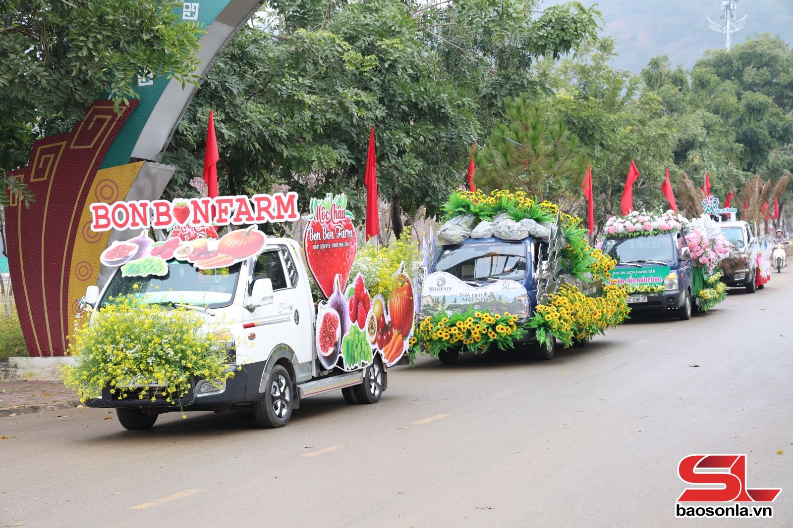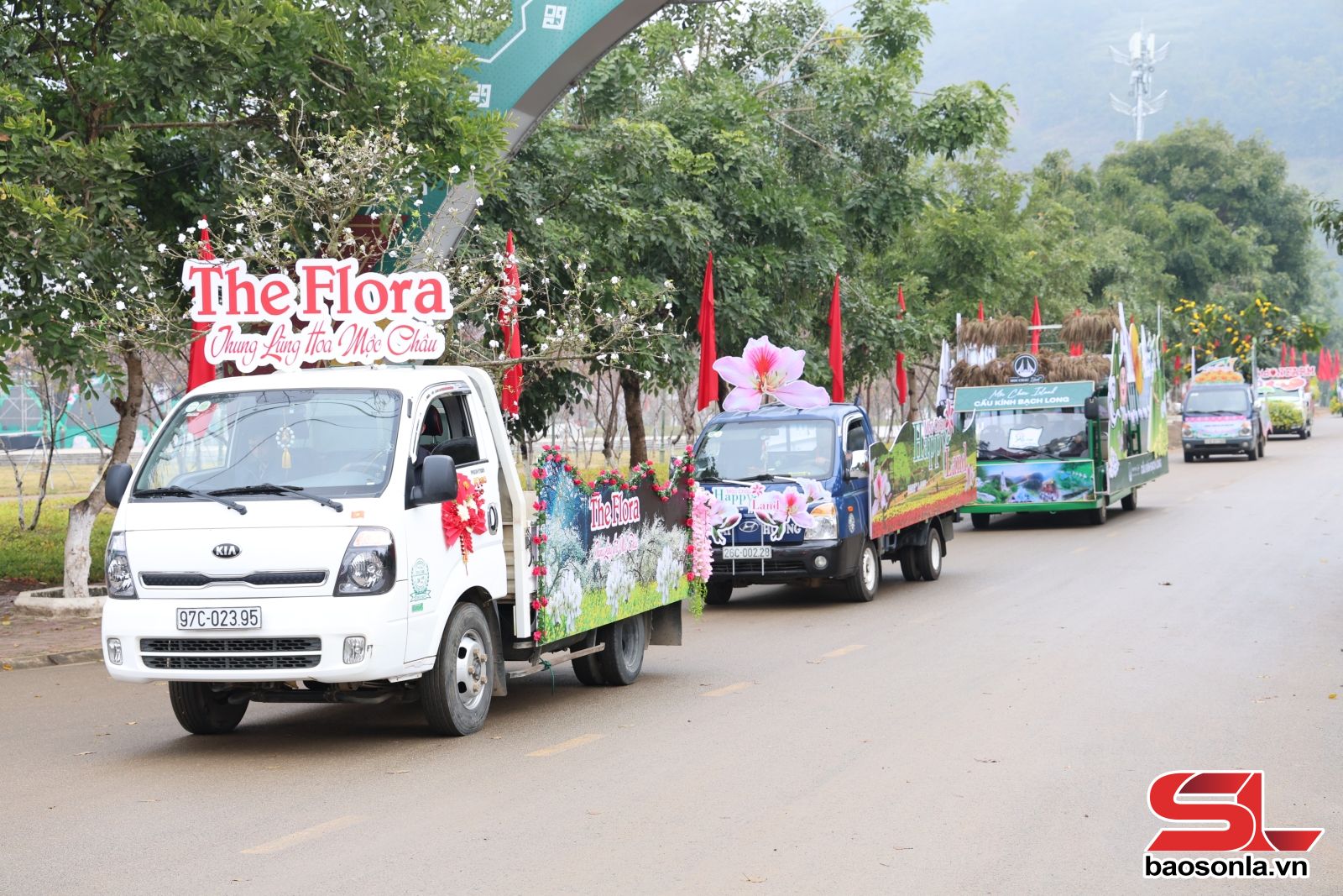 Xuất phát từ Quảng trường 8/5, 10 xe hoa đại diện cho các doanh nghiệp, HTX du lịch, nông nghiệp tiêu biểu trên địa bàn Mộc Châu đã diễu hành dọc các tuyến phố trung tâm như Nguyễn Lương Bằng, Trần Huy Liệu thuộc quốc lộ 6, quốc lộ 43 qua địa bàn các phường Mộc Châu, Vân Sơn.