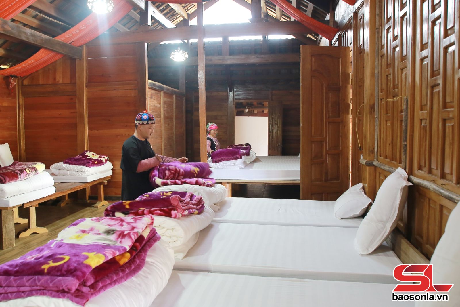 Tại Tổ dân phố Vặt Hồng, những nếp nhà sàn truyền thống của người Thái vẫn được giữ gìn nguyên vẹn kiến trúc bên ngoài, nhưng bên trong đã được nâng cấp để đáp ứng nhu cầu của khách du lịch hiện đại. Đến thăm Homestay Hoa Mộc Miên, một trong những cơ sở lưu trú uy tín tại Vặt Hồng, chúng tôi cảm nhận rõ sự chỉn chu trong từng chi tiết. Từ chăn ga, gối đệm sạch sẽ, thơm tho đến khu vực vệ sinh khép kín, hiện đại, tất cả đều xóa tan định kiến về sự “thiếu thốn” khi ở nhà dân.