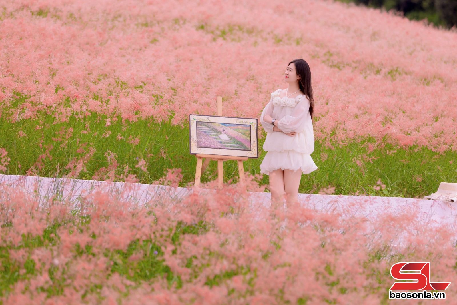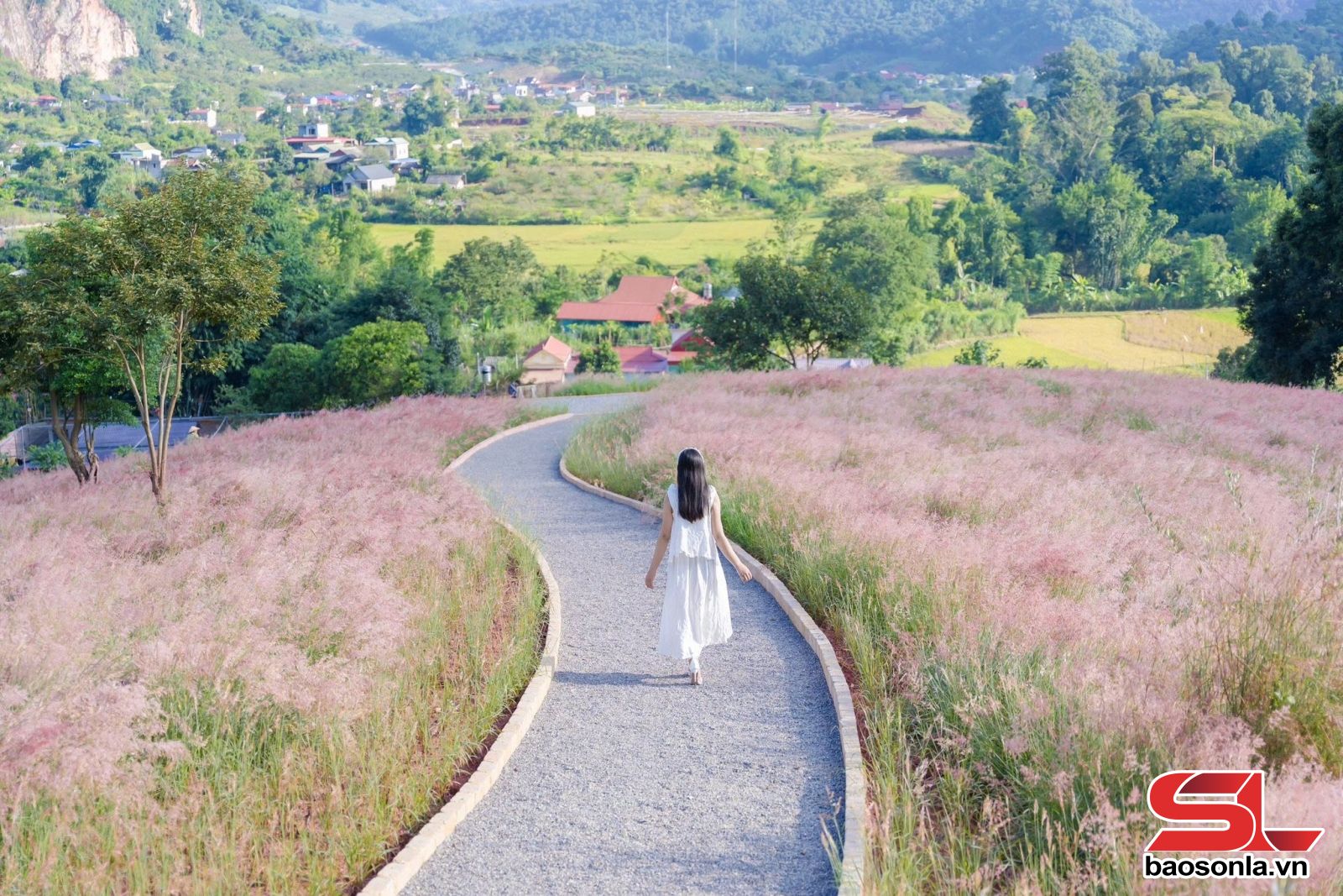 Rời bản Sò Lườn, chúng tôi di chuyển đến tổ dân phố Na Lun, phường Mộc Châu, nơi đây có đồi cỏ hồng đang được lan truyền trên mạng xã hội là điểm check-in đẹp không kém các đồi cỏ hồng Đà Lạt. Cỏ hồng thân mảnh, mọc thành bụi nhỏ khi mới lên sẽ nở theo từng cụm sau đó sẽ nở đều lan rộng. Đồi cỏ hồng đang vào độ đẹp nhất và dự tính sẽ kéo dài trong khoảng một tháng nữa. Dưới ánh nắng chiều kết hợp với màu hồng phớt nhẹ tạo nên khung cảnh thơ mộng thu hút các nhiếp ảnh gia, du khách và các bạn trẻ đến tham quan, chụp ảnh.