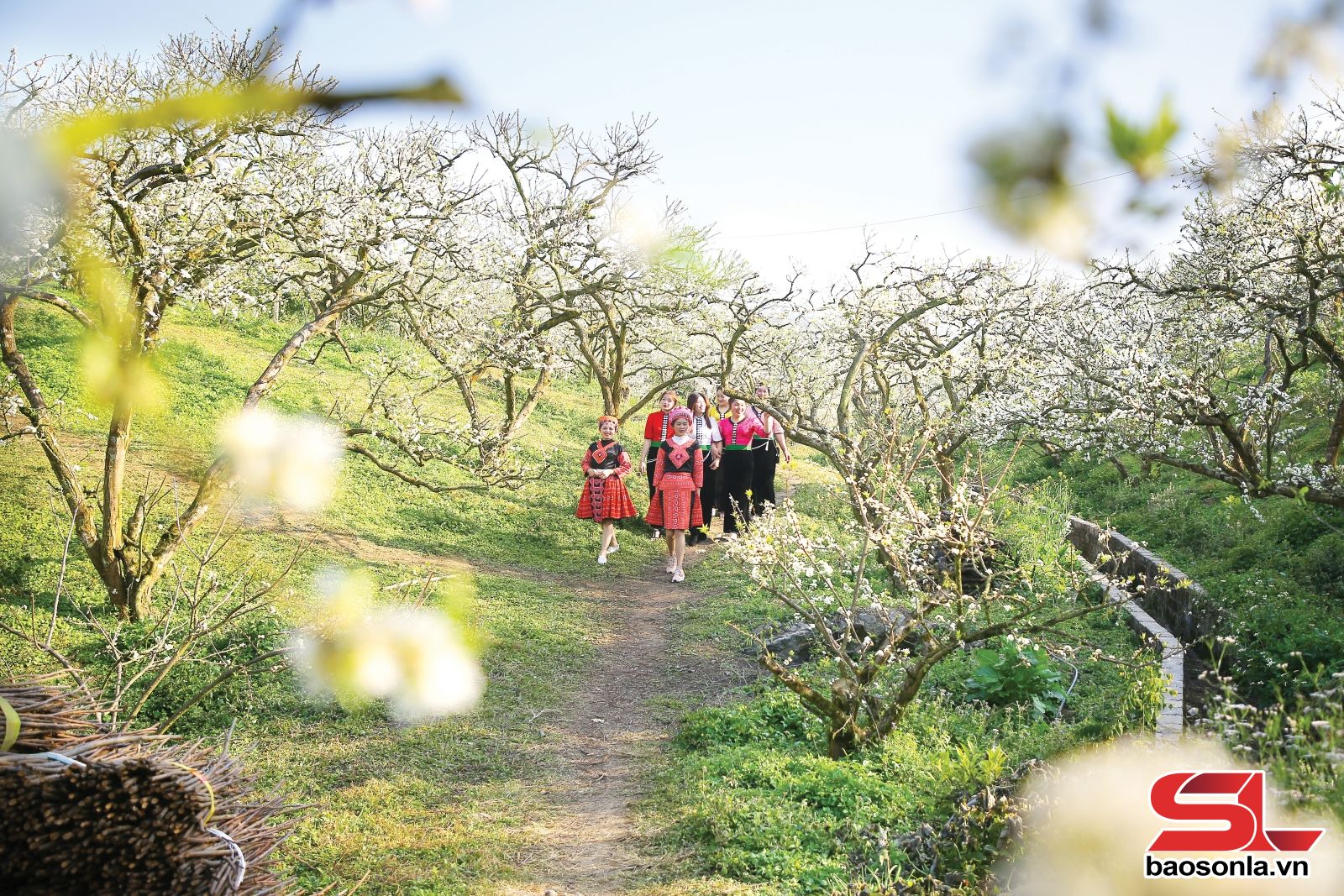 Đến cao nguyên Mộc Châu những ngày xuân, du khách sẽ say đắm, ngất ngây với cảnh sắc thiên nhiên tươi đẹp. Với hơn 3.200 ha mận hậu, mang lại hiệu quả kép, là phát triển nông nghiệp gắn với du lịch, xuân về những thung lũng hoa mận trắng ngút ngàn, tạo nên một khung cảnh nên thơ và dịu dàng. Thích thú chụp những bức ảnh trong vườn mận, chị Nguyễn Khánh Huyền, du khách đến từ Đà Nẵng, chia sẻ: Tôi như được lạc vào xứ sở thần tiên bởi hoa mận phủ trắng núi đồi, thung lũng. Cùng những bộ trang phục dân tộc nơi đây, giúp tôi lưu giữ được những khoảnh khắc đẹp khi đến với cao nguyên Mộc Châu.