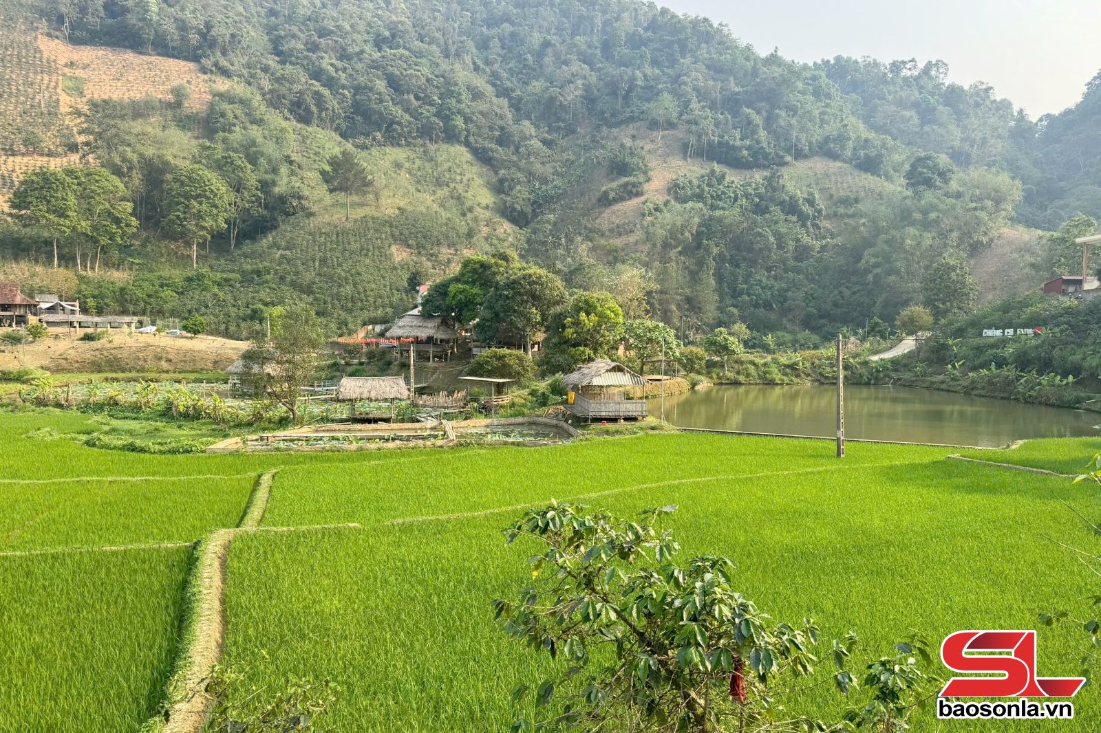 Từ trung tâm hành chính tỉnh Sơn La, chưa đến 10 phút chạy xe chúng tôi có mặt tại bản Hùn để cảm nhận vẻ bình yên, thơ mộng của vùng đất này. Bản Hùn là nơi sinh sống lâu đời của 228 hộ dân chủ yếu là đồng bào dân tộc Thái. Đón chúng tôi ngay đầu bản ông Tòng Văn Yên, Phó Bí thư chi bộ, Trưởng bản Hùn, khoát tay chỉ: Bản Hùn có hai dãy núi đá mang hình bóng núi rồng ôm lấy thung lũng ruộng bậc thang bảo vệ cho bản. Thực hiện xây dựng nông thôn mới, từ năm 2021 -2025, bản đã huy động hơn 7,2 tỷ đồng xây dựng hạ tầng, trong đó Nhà nước hỗ trợ 4,8 tỷ đồng, người dân đóng góp hơn 2,4 tỷ đồng, hơn 3.400 ngày công và hiến 5.200m² đất. Nhờ sự đồng lòng, đến nay 100% đường trục bản đã bê tông hóa, có hệ thống điện chiếu sáng; đường nội bản được vệ sinh hằng tuần; 100% nhà ở được chỉnh trang gọn gàng, công trình phụ trợ đảm bảo, rác thải được phân loại đúng quy định... Cuối năm 2024, bản được công nhận đạt chuẩn nông thôn mới.