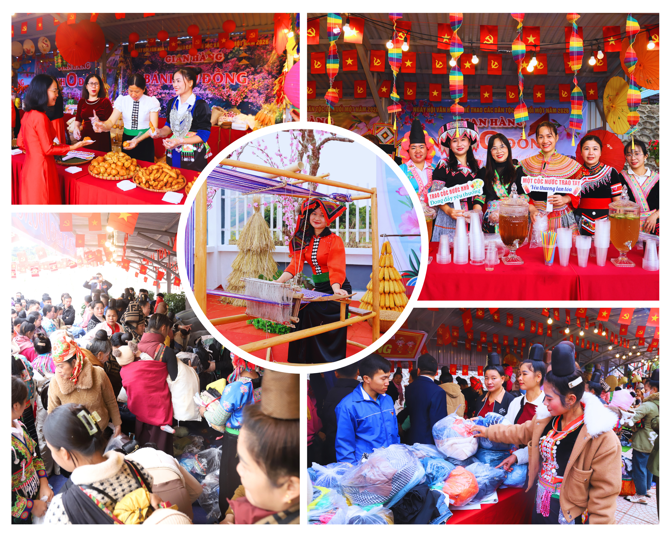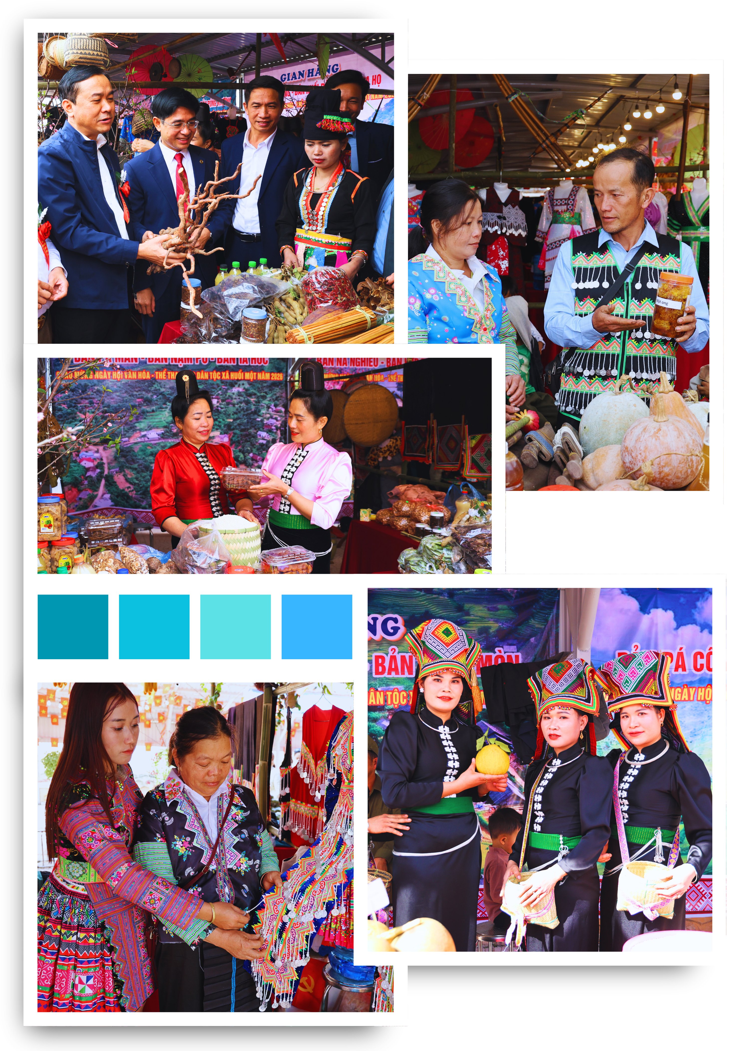 Điểm nhấn thu hút khách tham quan chính là không gian văn hóa với 9 gian hàng đại diện cho 27 bản trên địa bàn xã. Các gian hàng đã giới thiệu tiềm năng địa phương thông qua các sản vật tiêu biểu, như: Gạo nếp nương, dược liệu, măng khô... Đây cũng là không gian độc đáo để trưng bày trang phục truyền thống, góp phần quảng bá hình ảnh con người và bản sắc văn hóa đặc sắc của xã đến với du khách gần xa.