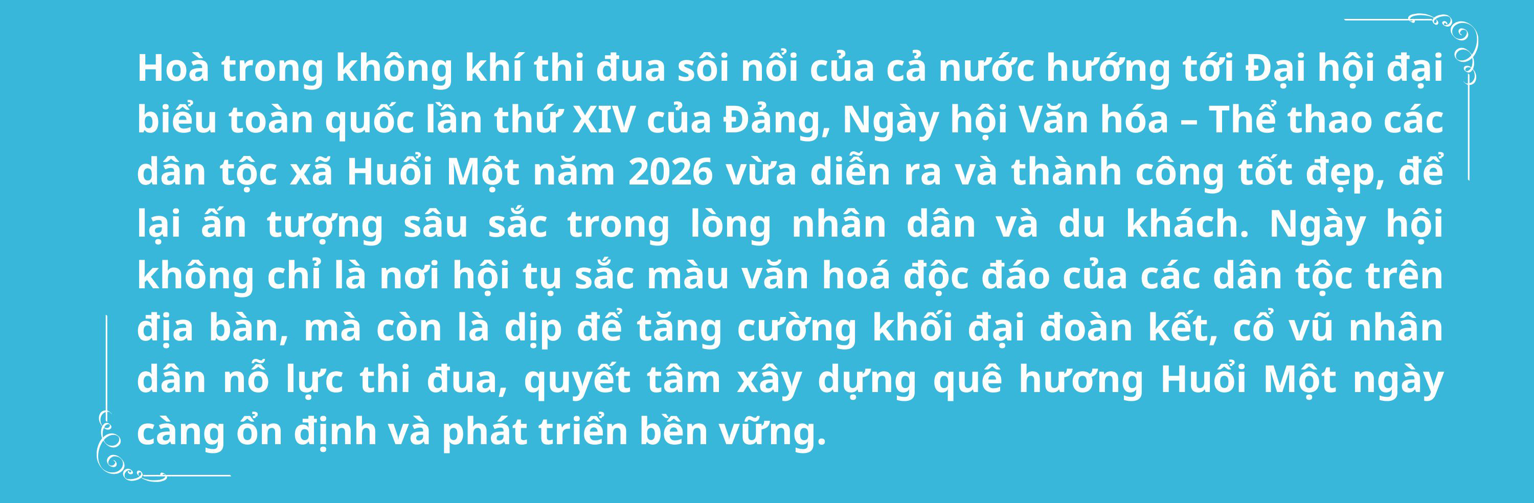 Ngày hội Văn hóa – Thể thao các dân tộc xã Huổi Một năm 2026 khép lại nhưng để dư âm tốt đẹp trong lòng nhân dân và du khách, đây là nền tảng tinh thần, sức mạnh để nhân dân các dân tộc Huổi Một cùng nhau xây dựng quê hương ngày càng giàu đẹp.