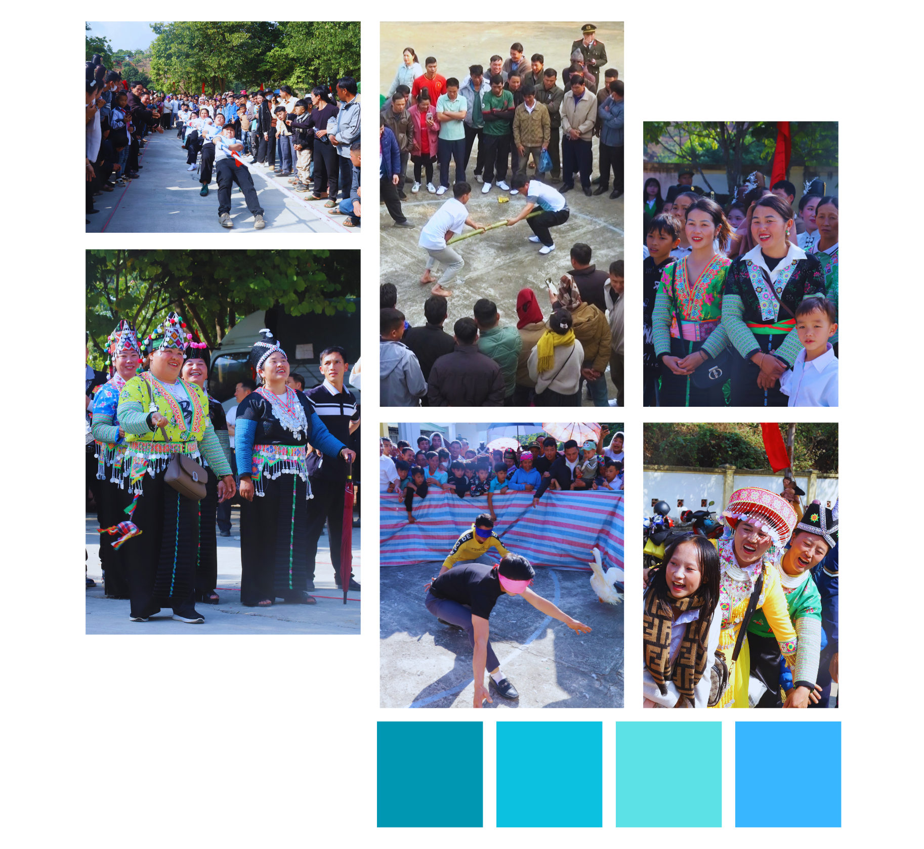 Không khí ngày hội càng thêm phần sôi động với sự góp mặt của hàng trăm vận động viên đại diện cho 27 bản, tham gia tranh tài ở các môn thể thao dân gian truyền thống. Những nội dung thi đấu như: Kéo co, đẩy gậy, giã bánh dày, tung còn và bịt mắt bắt vịt diễn ra trong sự cổ vũ nhiệt tình của đông đảo nhân dân, tăng tính hấp dẫn cho các trận đấu và thắt chặt thêm tình đoàn kết, gắn bó giữa các cộng đồng dân cư.