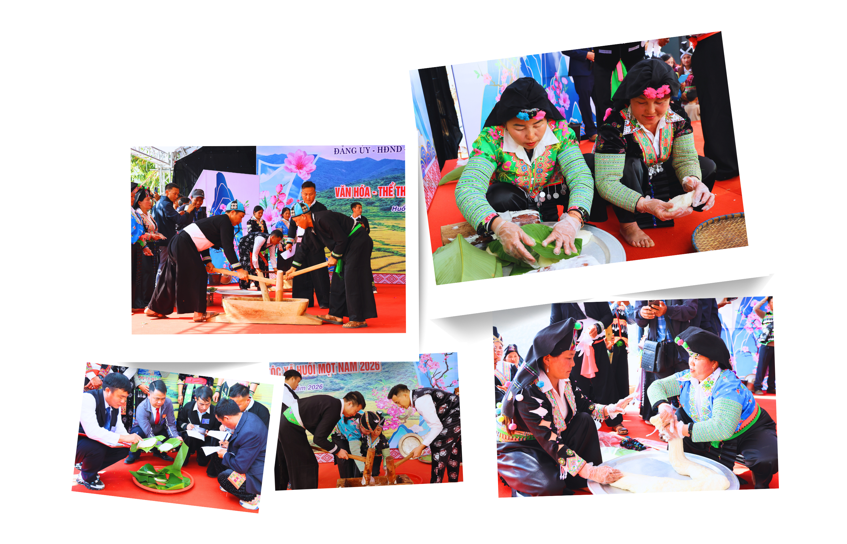 Ấn tượng với nhiều du khách là phần thi giã bánh dày, tôn vinh nét văn hóa đặc sắc và món ẩm thực chủ đạo trong ngày Tết cổ truyền của đồng bào dân tộc Mông. Bánh được làm từ gạo nếp thơm, đồ thành xôi chín dẻo rồi đem giã ngay khi còn nóng hổi. Máng giã bánh dày là sản phẩm thủ công được bà con đục đẽo từ thân gỗ rừng, mộc mạc, biểu trưng cho bản sắc văn hóa truyền thống lâu đời của đồng bào dân tộc Mông. Những người đàn ông phụ trách phần giã bánh cho đến khi xôi nếp thật nhuyễn, còn phụ nữ phụ trách lật và nặn bánh. Những mẻ bánh ngon trắng ngần, nhuyễn mịn và thơm lừng hương nếp nương.