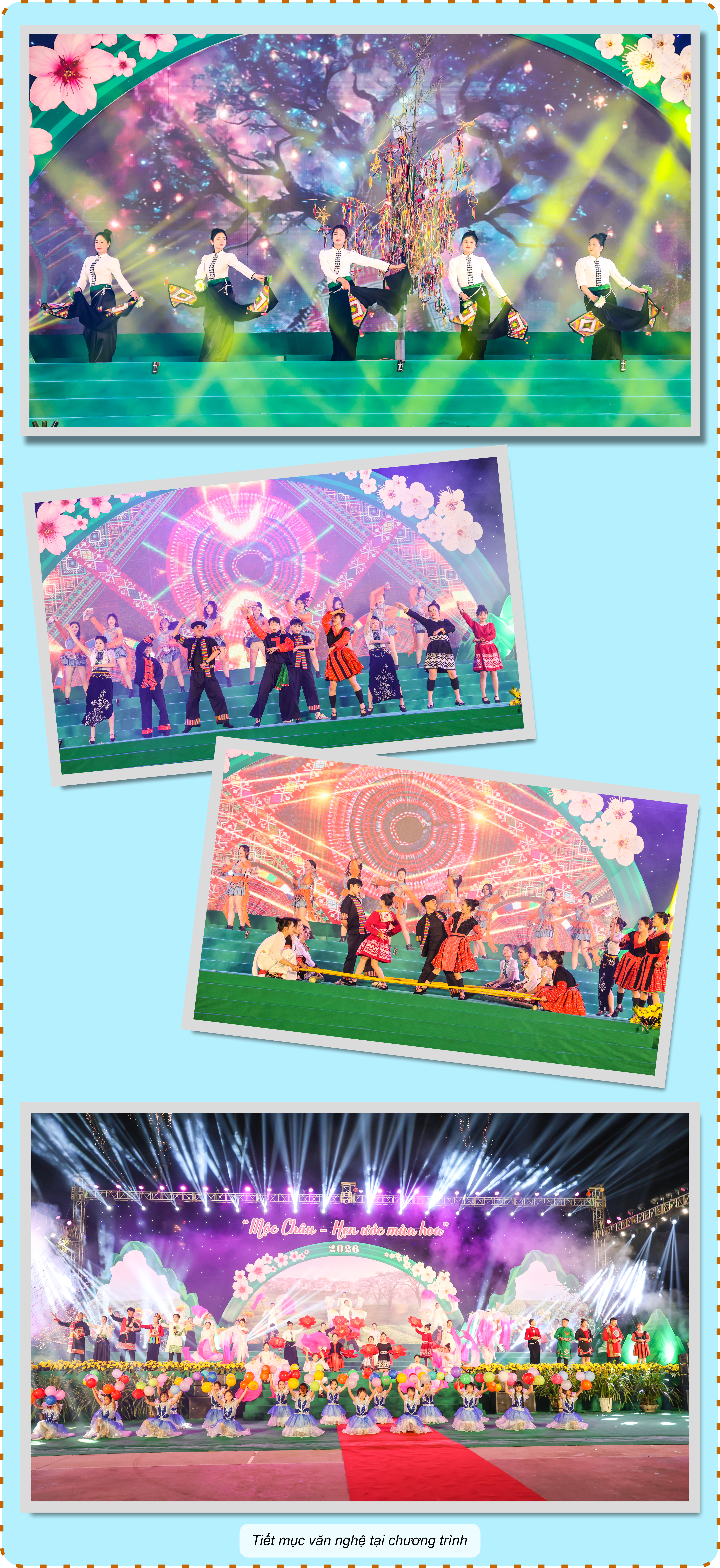 Tại các điểm du lịch, không khí ngày hội diễn ra sôi động, thu hút nhân dân, du khách, các đoàn famtrip đến tham quan, trải nghiệm, tìm hiểu cơ hội đầu tư như: Happy Land Mộc Châu tổ chức không gian "Thị trấn tuyết" và "Làng Tết xưa”; Khu du lịch Mu Náu Farm tổ chức thi thời trang thực cảnh “Mộc Châu - rực rỡ mùa hoa”; trải nghiệm không gian chợ phiên, giới thiệu trưng bày các sản phẩm OCOP tại Khu du lịch Thác Dải Yếm; các hoạt động văn hóa cộng đồng, trải nghiệm các trò chơi thể thao mạo hiểm tại Khu du lịch Rừng thông Phoenix Mộc Châu...
