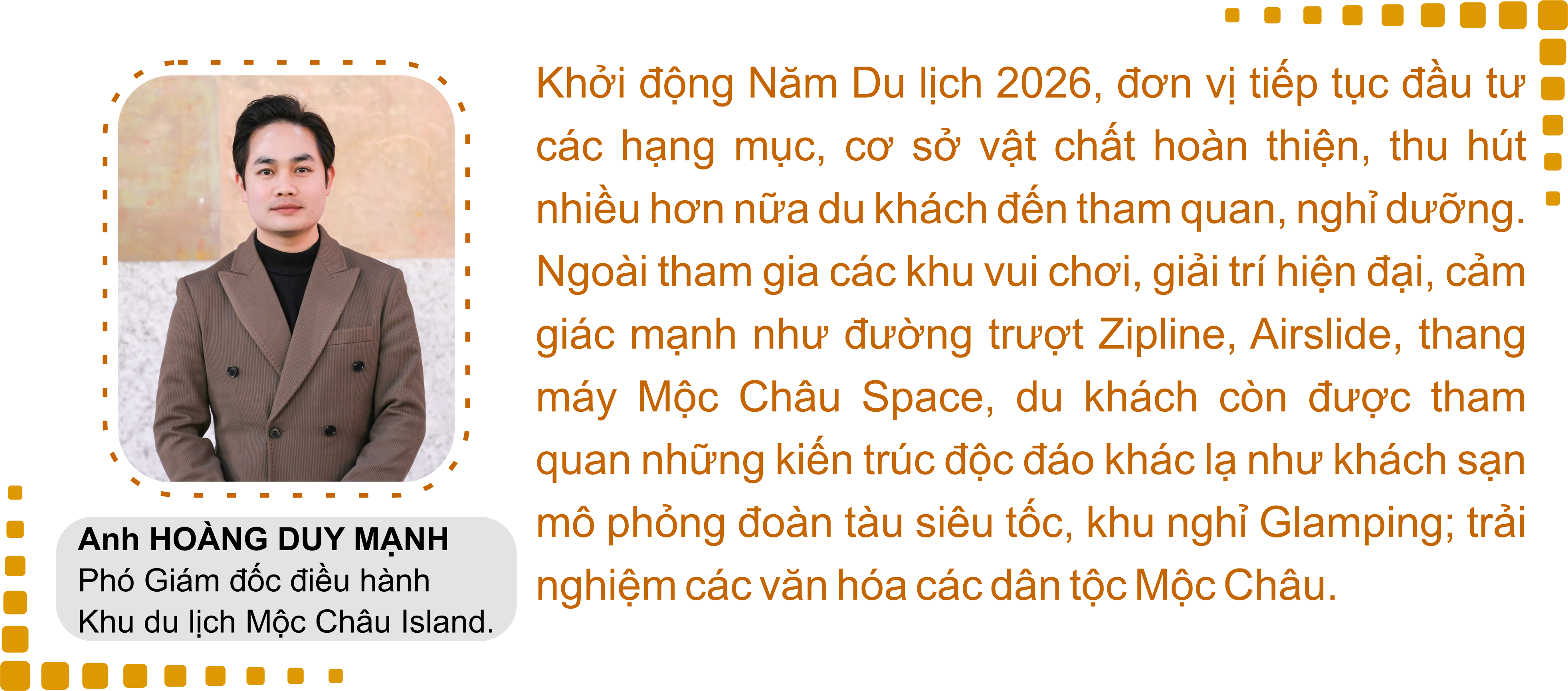 "Hẹn ước mùa hoa" năm 2026 là cú hích quan trọng, mở màn cho một năm du lịch thắng lợi, đưa hình ảnh Mộc Châu thân thiện, mến khách đến đông đảo du khách trong nước và quốc tế.