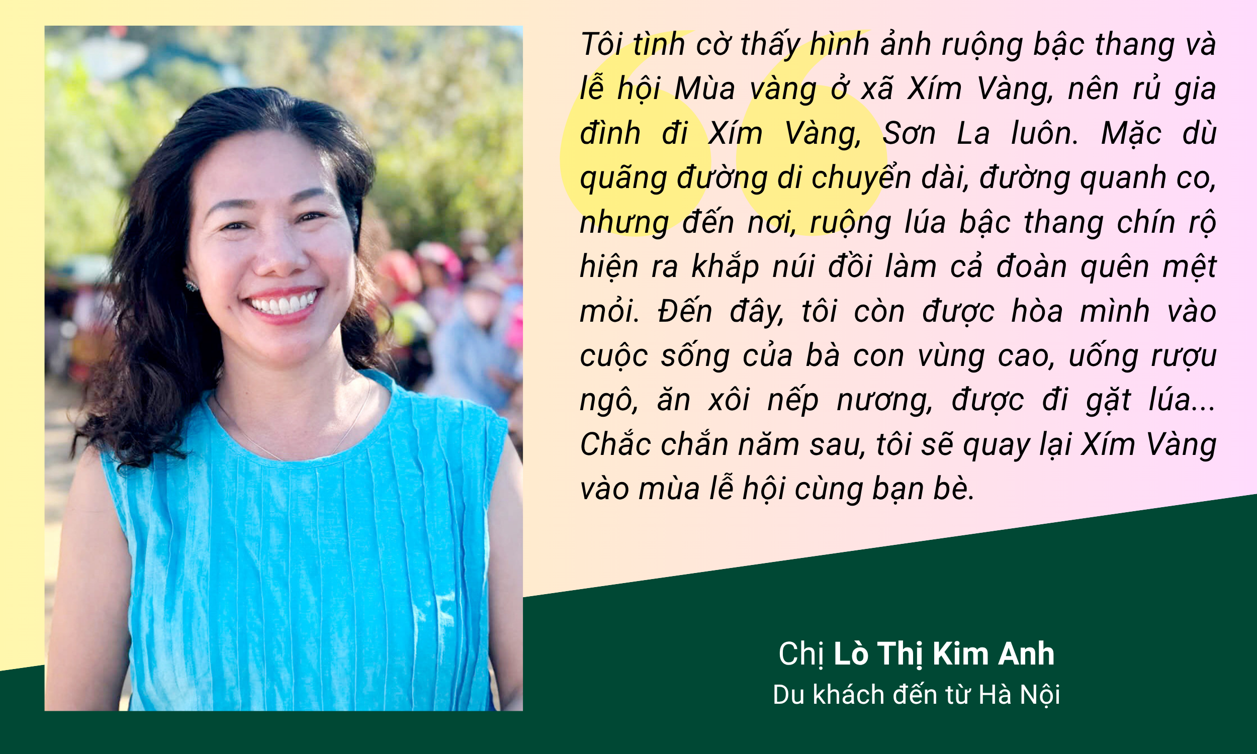 Xím Vàng mùa này không chỉ rực rỡ bởi sắc vàng lúa chín, còn bừng sáng bởi sắc màu văn hóa vùng cao và sự nồng hậu, hiếu khách của bà con nơi đây. Lễ hội đã mang đến cho du khách những cảm xúc đặc biệt và ấn tượng sâu sắc, trở thành điểm đến hấp dẫn trong hành trình khám phá vùng cao của du khách trong và ngoài nước.