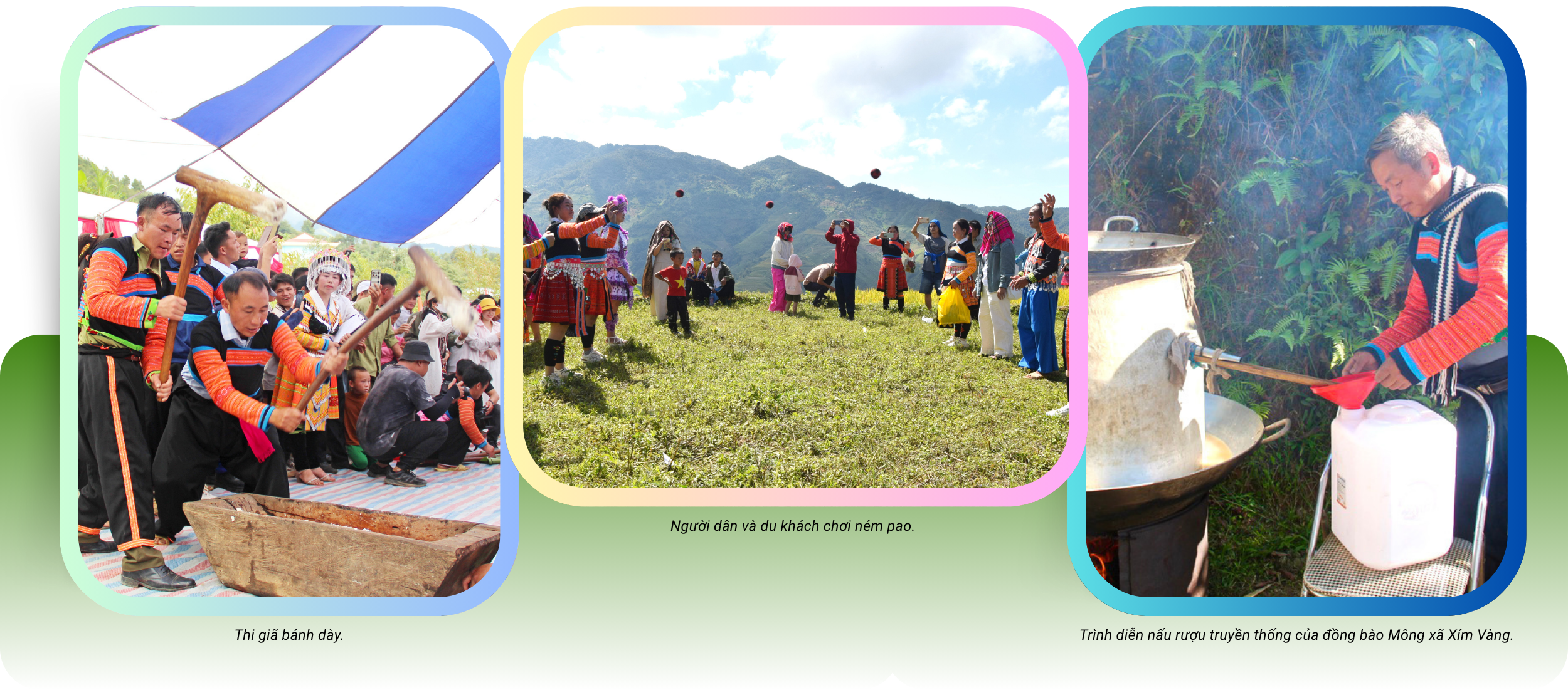 Tại khu vực diễn ra lễ hội, còn có chuỗi các hoạt động văn hóa, văn nghệ và thể thao dân tộc, như: giã bánh dày, kéo co, bắn nỏ, ném pao, nấu rượu, tái hiện nghề rèn và trưng bày các sản phẩm đặc sản táo mèo, thảo quả, bánh giầy, rượu Hang Chú… các hoạt động đậm đà bản sắc đã níu chân du khách, mang đến cơ hội trải nghiệm, khám phá đời sống phong phú của người Mông nơi đây.