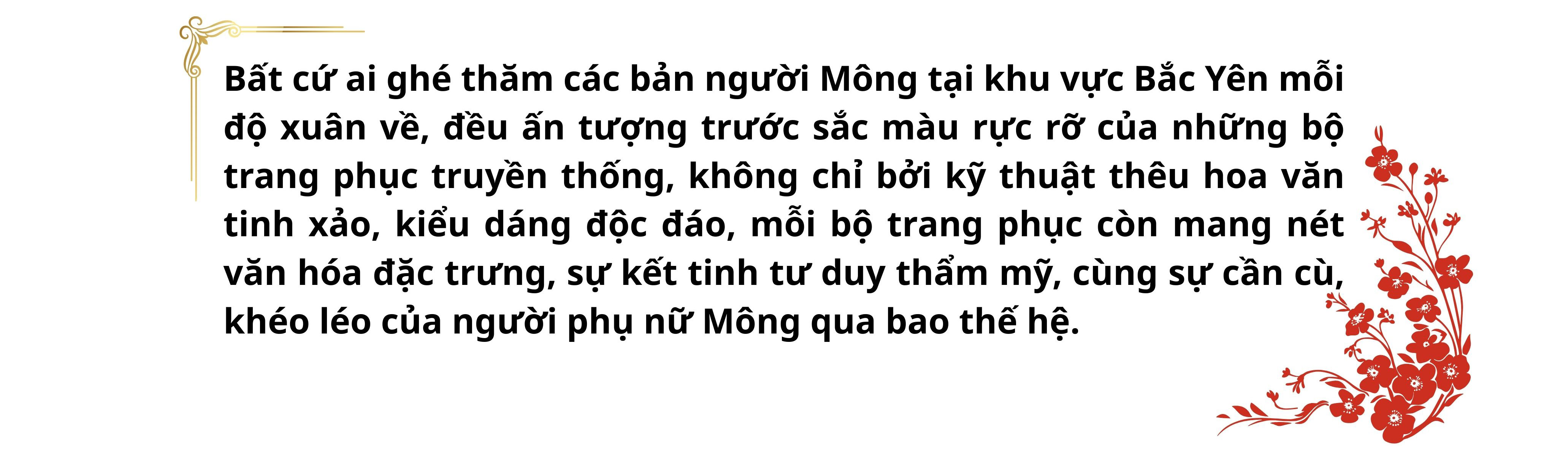 Trên những bản làng vùng cao, sắc váy áo rực rỡ như góp thêm "hồn" cho đất trời vào xuân, để lại dấu ấn khó phai trong lòng du khách, mở ra hướng đi mới trong việc tạo sinh kế, nâng cao thu nhập cho nhân dân. Đây cũng chính là động lực để đồng bào Mông vùng cao Bắc Yên tự tin hội nhập, quyết tâm giữ gìn di sản gắn với phát triển kinh tế - xã hội địa phương một cách bền vững.