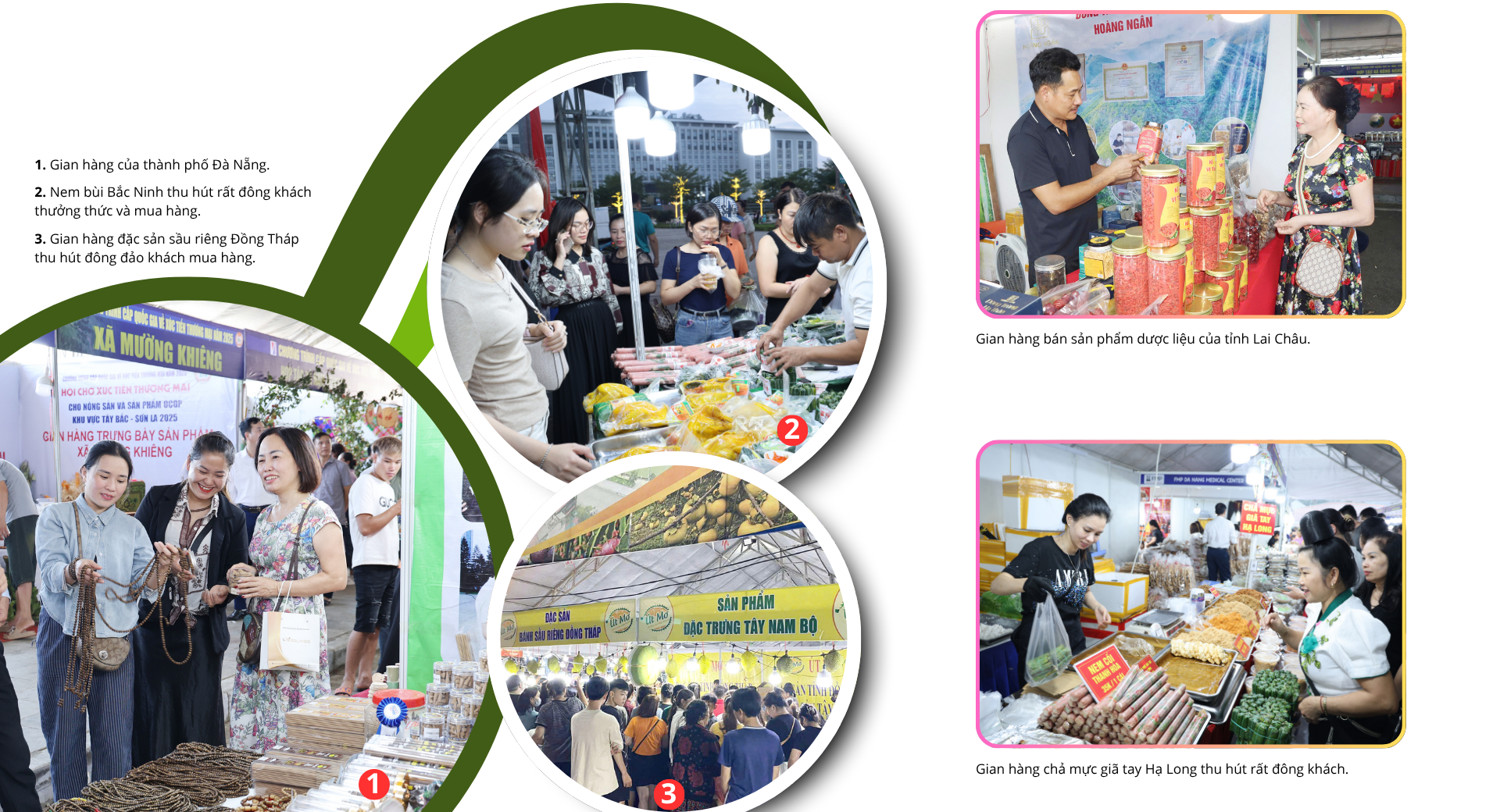 Cùng với đó, 30 gian hàng của các tỉnh, thành phố trong nước như: Hà Nội, Quảng Ninh, Hòa Bình, Yên Bái, Đắk Lắk... tạo nên một không gian giao thoa đa sắc, thể hiện tinh thần đoàn kết, hội nhập và chia sẻ kinh nghiệm xúc tiến thương mại giữa các vùng miền