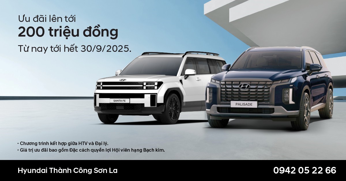 Tháng 9/2025, Liên doanh ô tô Hyundai Thành Công Việt Nam (HTV) chính thức triển khai Chương trình ưu đãi hấp dẫn lên đến 200 triệu đồng khi mua xe Hyundai.