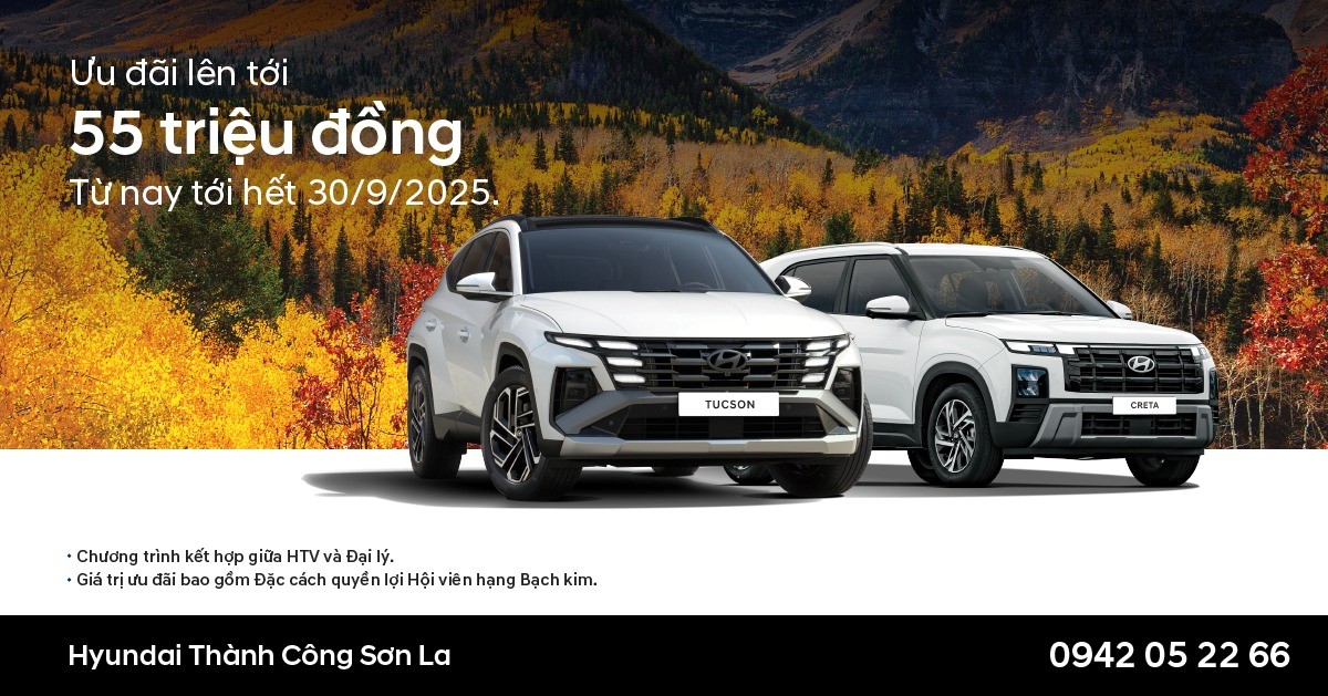 Khẳng định cho cam kết này, trong tháng 9/2025, Hyundai Thành Công Việt Nam phối hợp cùng hệ thống Đại lý tiếp tục củng cố các hoạt động kinh doanh, nâng cao chất lượng dịch vụ và trải nghiệm khách hàng với chương trình ưu đãi đặc biệt trong tháng 9/2025, mang đến cơ hội sở hữu các mẫu xe Hyundai với các ưu đãi như sau: