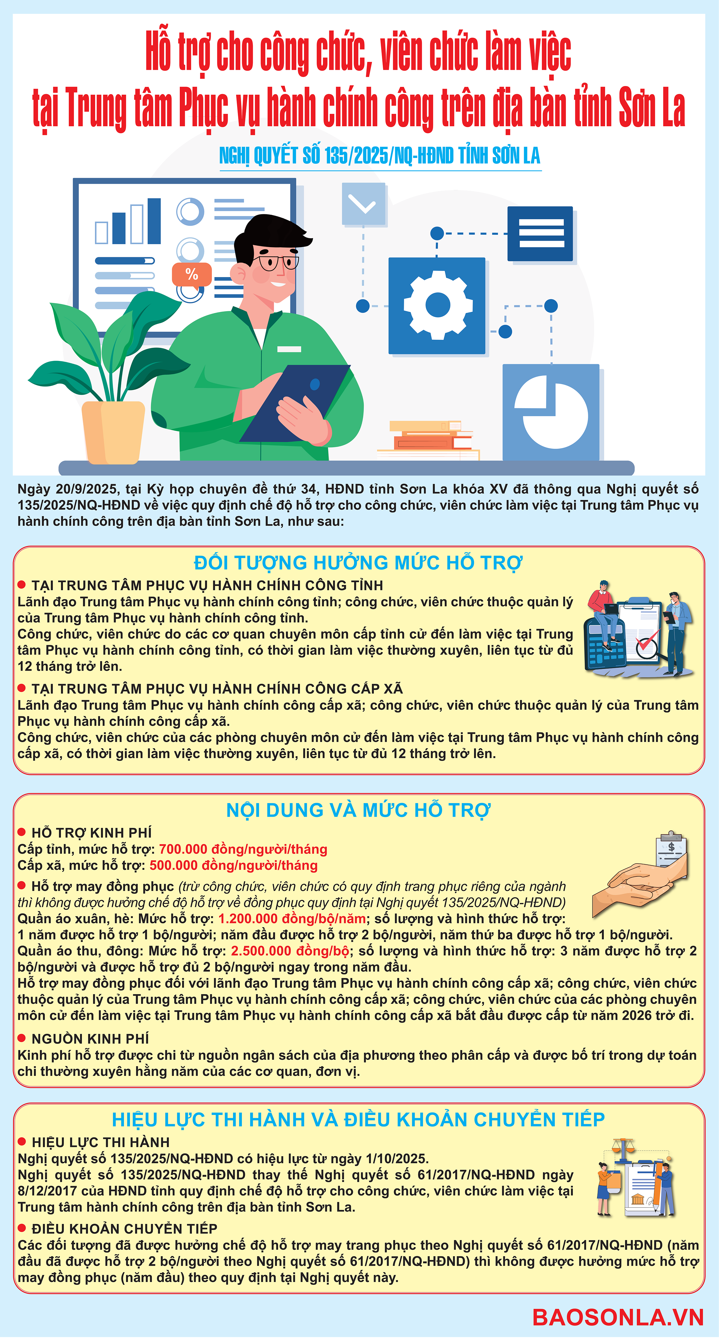 Hỗ trợ cho công chức, viên chức làm việc tại Trung tâm Phục vụ hành chính công trên địa bàn tỉnh Sơn La