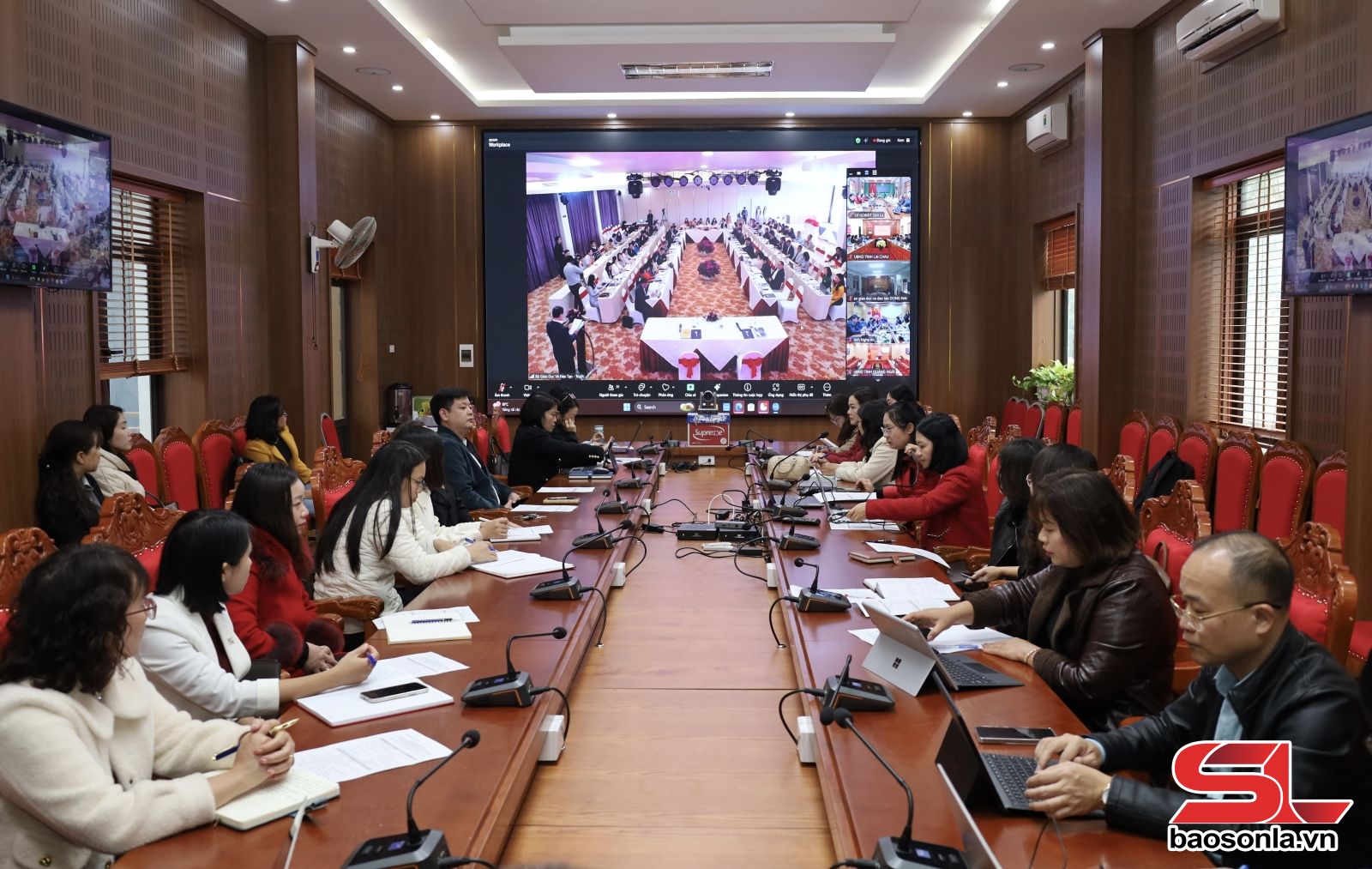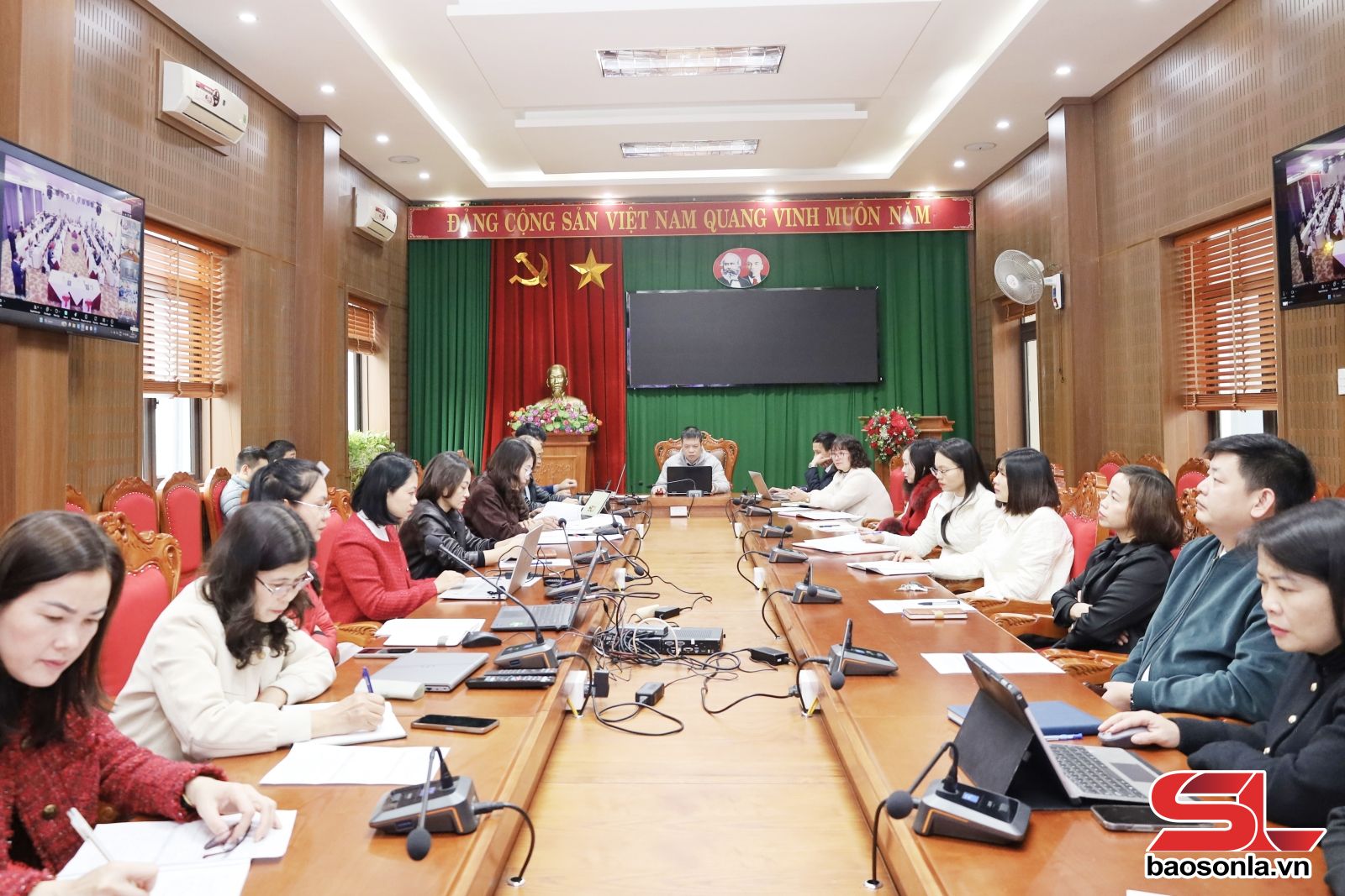 Các đại biểu dự hội nghị tại điểm cầu tỉnh Sơn La.