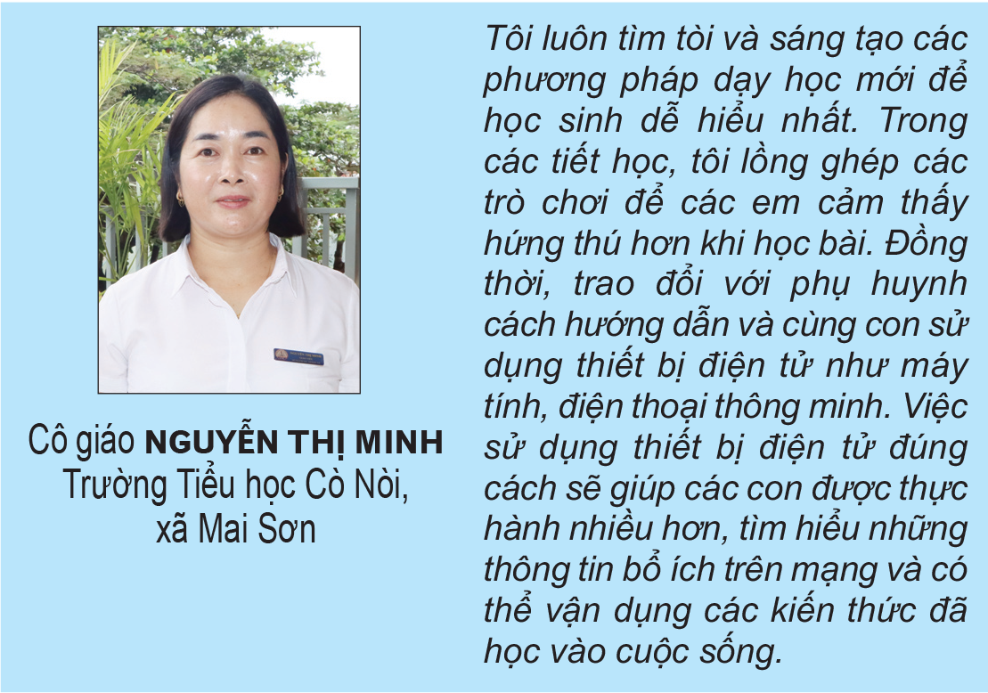 Nâng cao chất lượng giáo dục gắn với chuyển đổi số, xã Mai Sơn đề ra mục tiêu: Hiện đại hóa công tác quản lý; đổi mới phương pháp dạy - học; nâng cao năng lực và kỹ năng số cho giáo viên, học sinh và cộng đồng, góp phần nâng cao chất lượng giáo dục, hướng tới nền giáo dục thông minh, bền vững.