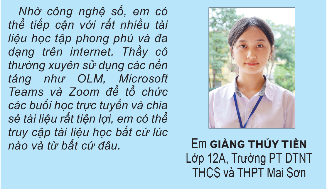 Năm học 2025-2026, Mai Sơn quyết tâm hoàn thiện cơ sở dữ liệu ngành giáo dục đồng bộ với quốc gia; 100% giáo viên đạt chuẩn kỹ năng công nghệ thông tin; xây dựng ngân hàng bài giảng e-learning dùng chung, tích hợp nội dung giáo dục địa phương; mở rộng mô hình học kết hợp trực tuyến và trực tiếp; đảm bảo an toàn, an ninh mạng trong toàn ngành giáo dục. Đây là những bước đi cụ thể, vững chắc để đưa giáo dục Mai Sơn bắt kịp xu thế giáo dục thông minh của toàn ngành và cả nước.