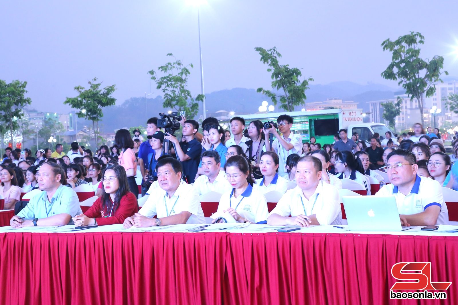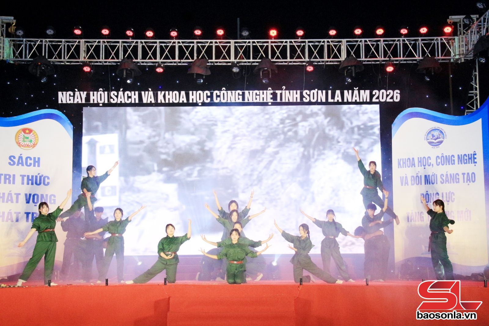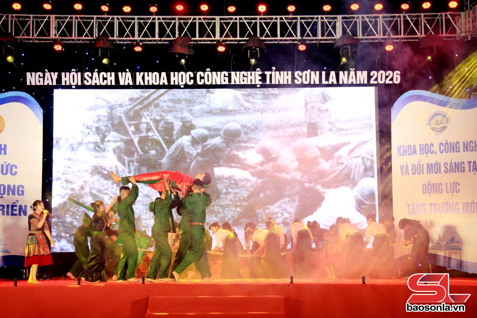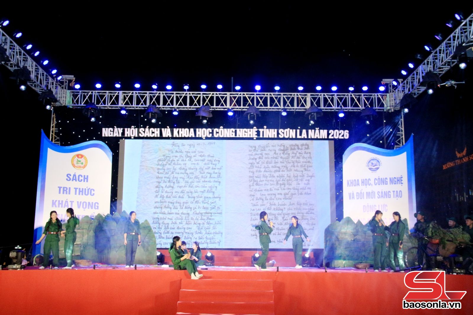 Trong khuôn khổ các hoạt động Ngày hội Sách và Khoa học Công nghệ tỉnh Sơn La năm 2026, chiều 21/4, tại Sân ao cá Bác Hồ, Quảng trường Tây Bắc đã diễn ra phần thi Sân khấu hóa tác phẩm văn học hoặc sự kiện lịch sử. Phần thi thu hút 6 đội thi đến từ các trường THCS, THPT trên địa bàn tỉnh tham gia.