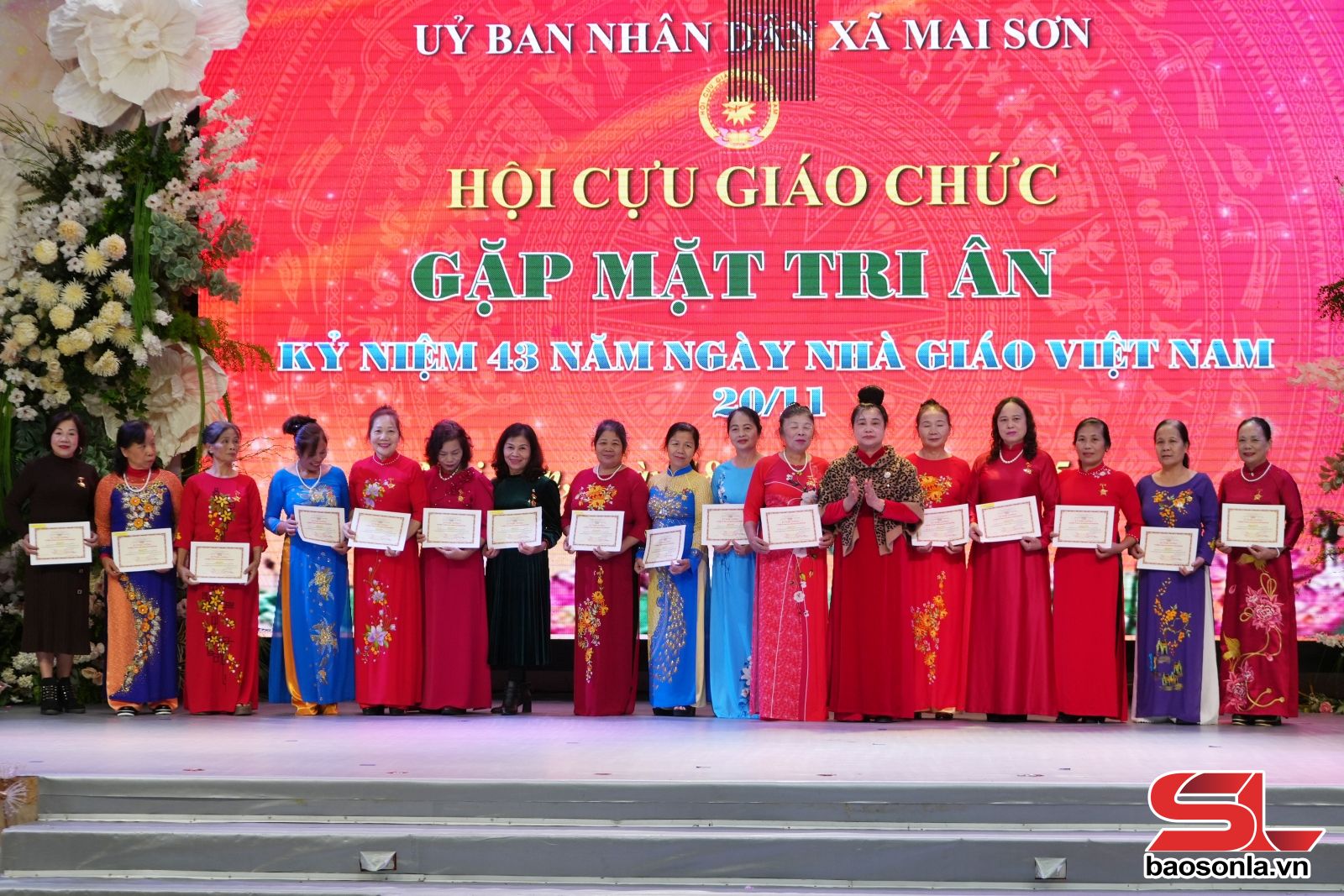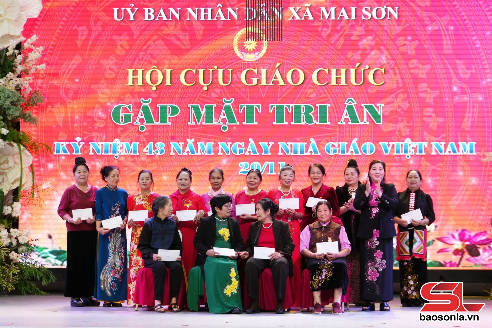 Nhân dịp ngày, Hội Cựu giáo chức Việt Nam đã tặng kỷ niệm chương vì sự nghiệp Cựu giáo chức Việt Nam cho 32 hội viên; mừng thọ, tặng quà cho 23 hội viên đạt 90, 80, 70 tuổi; tri ân tặng quà cho các cựu giáo chức có hoàn cảnh khó khăn trị giá trên 18 triệu đồng. Công ty TNHH đầu tư xây dựng Thành Long, xã Mai Sơn tặng 144 suất quà Cao sâm Ngọc Linh Thành Long Sơn La cho các Cựu giáo chức cao tuổi, ốm yếu, bệnh tật hiểm nghèo cư trú trên địa bàn.