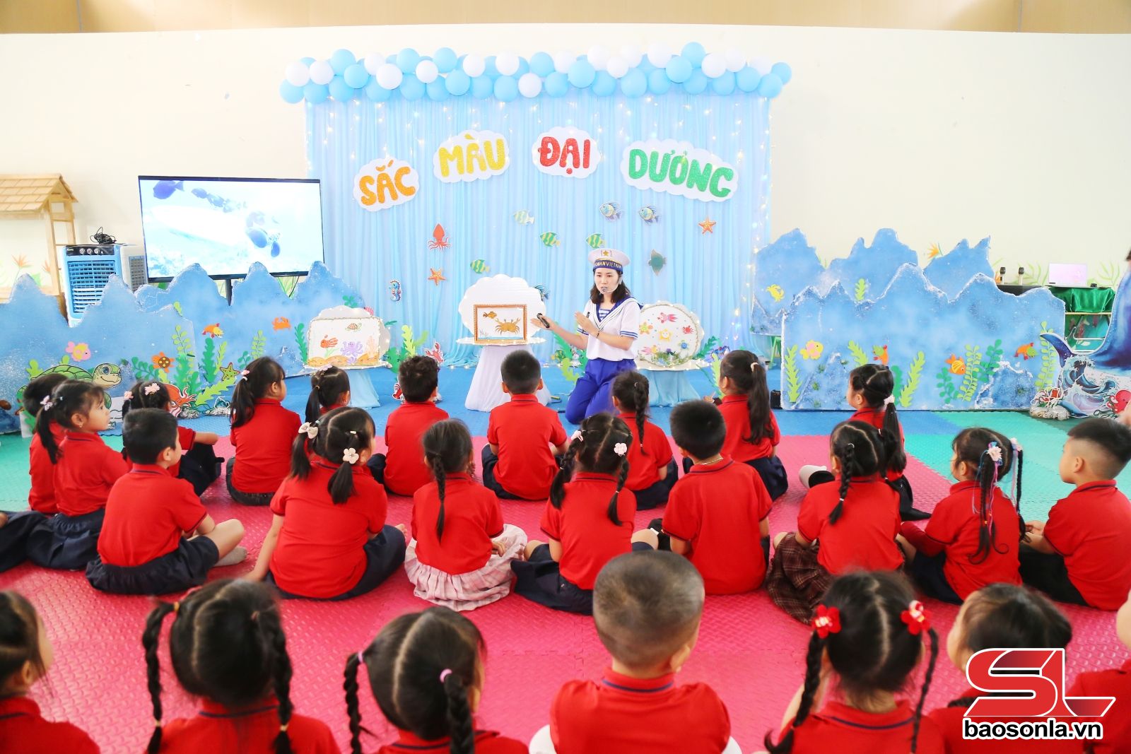 Trường Mầm non Ngôi Sao Sơn La là đơn vị giáo dục tư thục đạt chuẩn quốc gia mức độ II, cơ sở vật chất khang trang, khuôn viên rộng rãi, với đầy đủ các phòng chức năng như nhà thể chất, phòng học STEM… tạo môi trường học tập hiện đại, thân thiện. Được trực tiếp tham dự một tiết học của lớp mẫu giáo lớn với chủ đề “Khám phá đại dương”, chúng tôi cảm nhận rõ không khí học tập sôi nổi, hào hứng của các em nhỏ. Giáo viên linh hoạt kết hợp nhiều phương pháp giảng dạy, sử dụng tranh ảnh, mô hình, hiện vật và đồ chơi trực quan, giúp trẻ dễ dàng quan sát, tiếp cận kiến thức một cách tự nhiên. Ngoài ra, trẻ còn được tham gia các hoạt động trải nghiệm, thực hành, làm quen với kiến thức khoa học, phát triển kỹ năng quan sát, tư duy logic và khả năng sáng tạo.