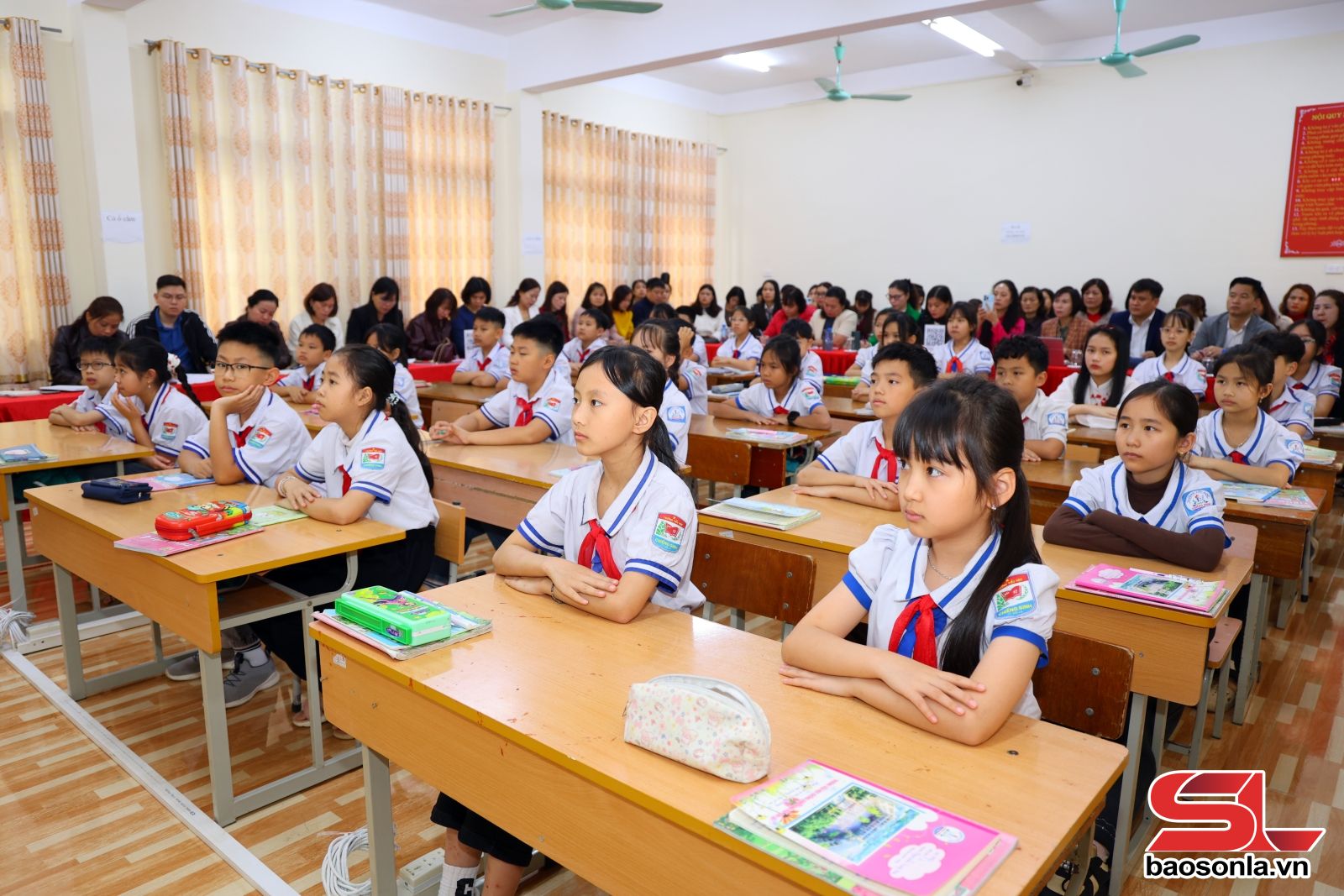 Các đại biểu đã tham quan thực tế hoạt động trải nghiệm (Sinh hoạt dưới cờ) với chủ đề “Tự hào truyền thống anh hùng - Viết tiếp câu chuyện hòa bình”; dự hoạt động giáo dục minh họa tiết dạy Tiếng Việt (nói và nghe) lớp 4 với chủ đề “Truyền thống Uống nước nhớ nguồn”.