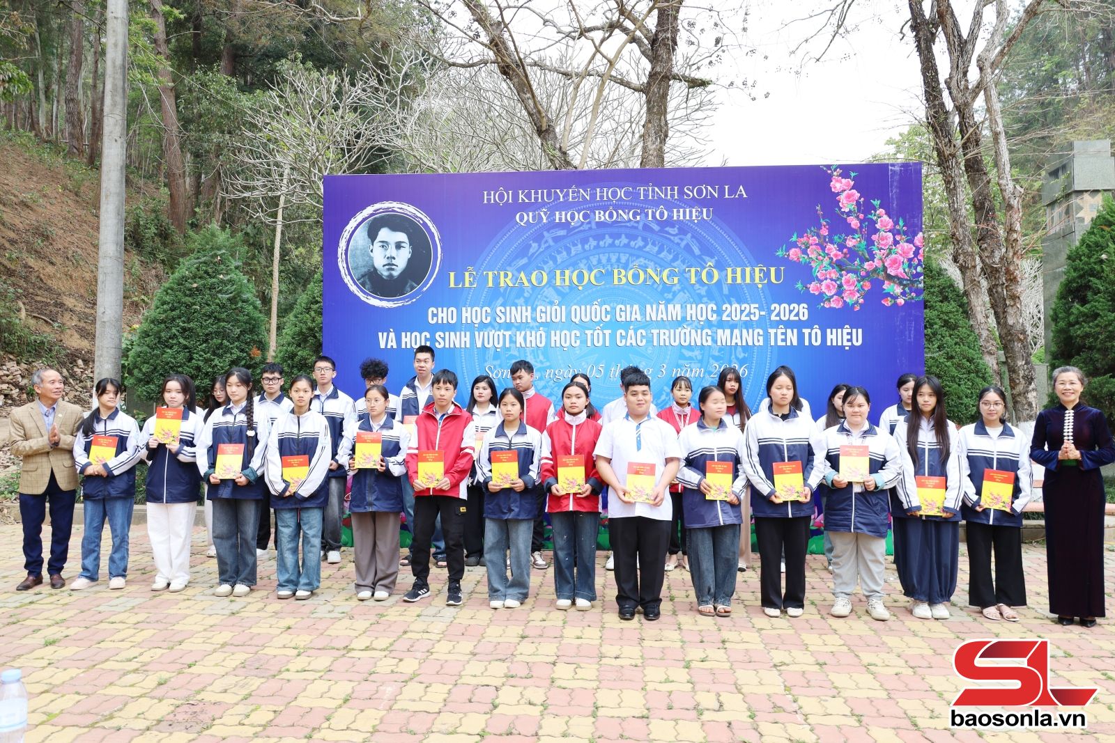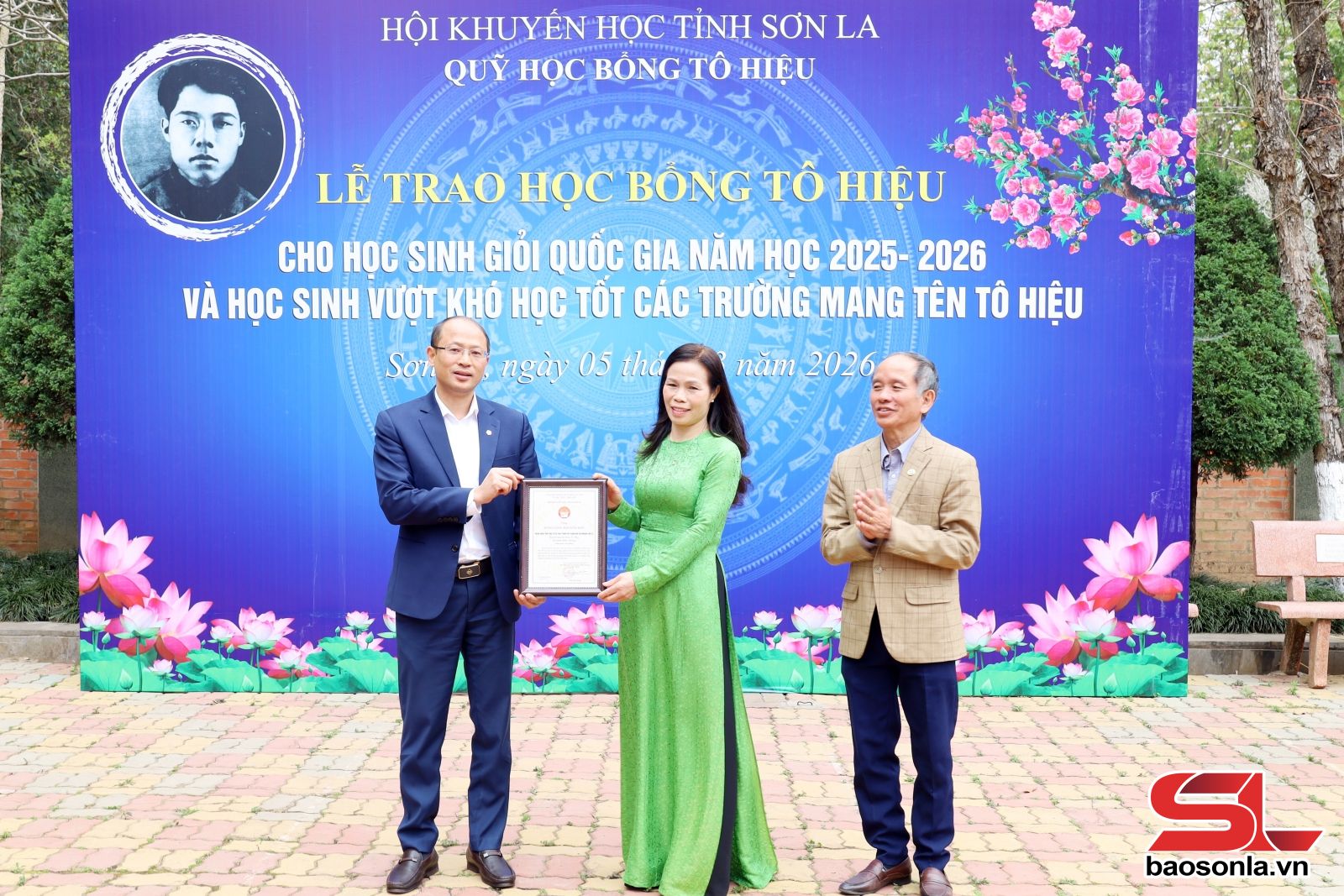 Ngày 5/3, Hội Khuyến học tỉnh Sơn La tổ chức Lễ trao học bổng Tô Hiệu cho học sinh đạt giải tại Kỳ thi chọn học sinh giỏi quốc gia bậc THPT năm học 2025-2026 và học sinh vượt khó học tốt của các trường mang tên Tô Hiệu, nhân kỷ niệm 82 năm Ngày mất của Nhà cách mạng, liệt sĩ Tô Hiệu (7/3/1944-7/3/2026). Dự buổi lễ có đồng chí Hà Trung Chiến, Ủy viên Ban Thường vụ Tỉnh ủy, Phó Chủ tịch Thường trực UBND tỉnh cùng lãnh đạo một số sở, ban, ngành của tỉnh.